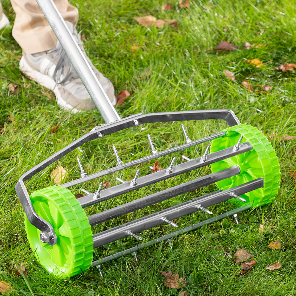 Ручной аэратор Palisad 62031 размером 440 х 1400 мм предназначен для ухода за газонной травой и усиления ее роста. Устраняет уплотнения в верхнем слое почвы, обеспечивает приток кислорода и влаги к корням, благодаря чему грунт насыщается питательными веществами и становится более стойким к засухе. Аэратор предназначен для использования на влажном газоне.