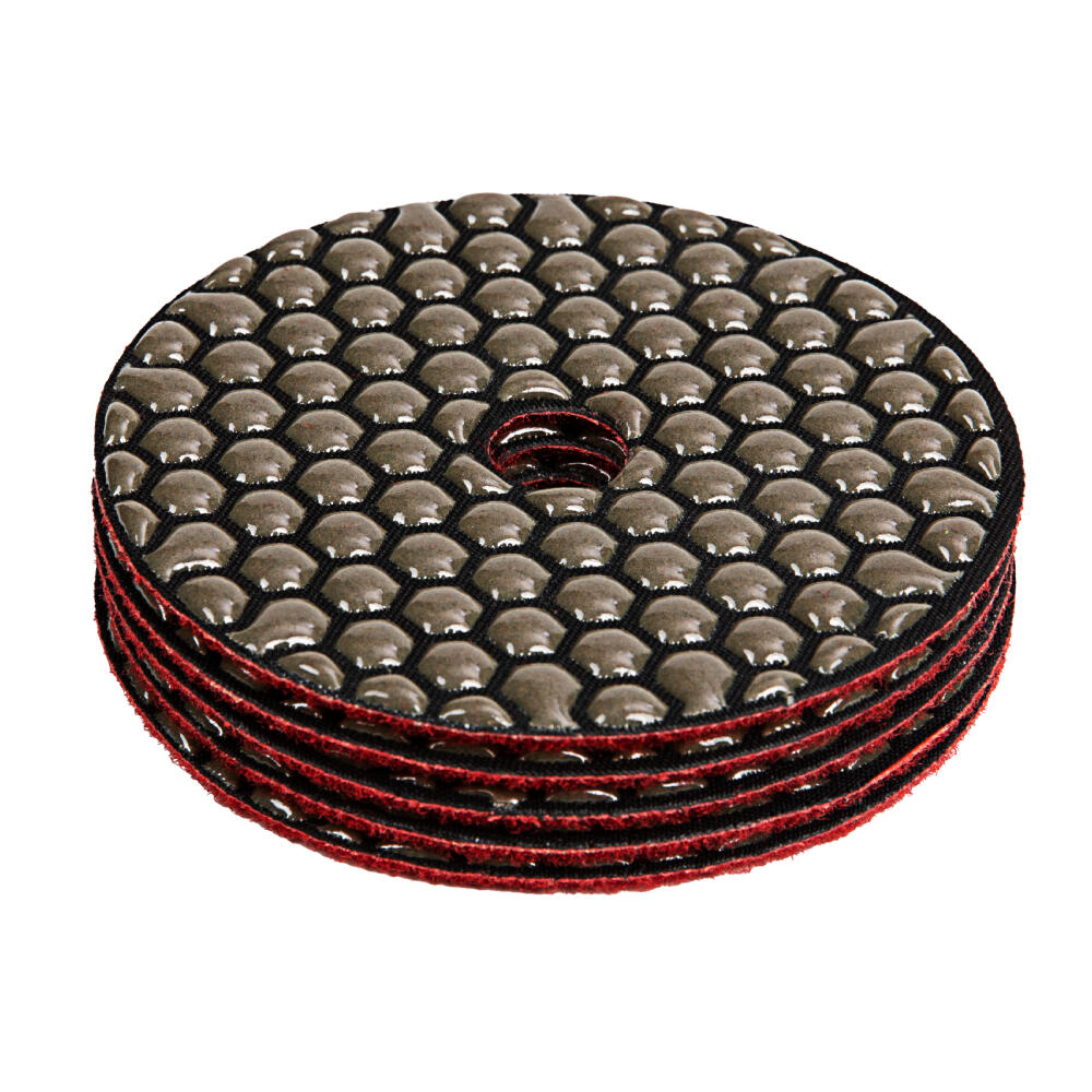 Алмазный гибкий шлифовальный круг Matrix 73502 диаметром 100 мм, с зернистостью P 200, 5 шт. в упаковке, предназначен для сухого шлифования преимущественно цветных и черных поверхностей из гранита, мрамора, природного и искусственного камня, керамогранита. Абразив с зернистостью P 200 снимает большой слой материала и используется для черновой шлифовки. Гибкий круг удобен для обработки предметов сложной формы. Оснастка используется на УШМ с установленной опорной тарелкой для АГШК.