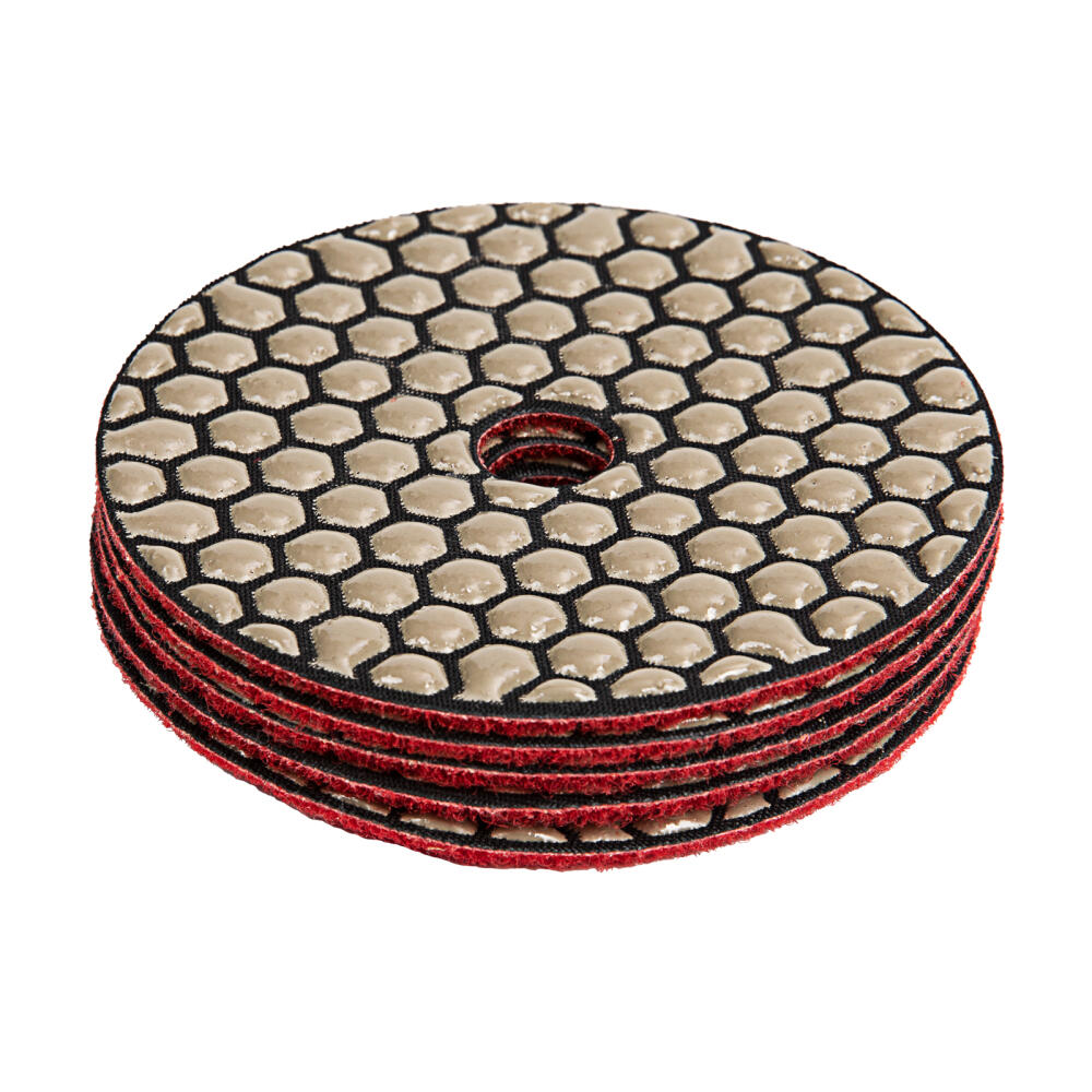 Алмазный гибкий шлифовальный круг Matrix 73506 диаметром 100 мм, с зернистостью P 3000, 5 шт. в упаковке, предназначен для сухого шлифования гранита, мрамора, природного и искусственного камня, керамогранита. Используется на поверхностях разного цвета, в том числе черных. Абразив с зернистостью P 3000 применяется для финишного полирования, позволяет добиться глянцевого блеска материалов. Гибкий круг удобен для обработки предметов сложной формы. Оснастка используется на УШМ с установленной опорной тарелкой для АГШК.