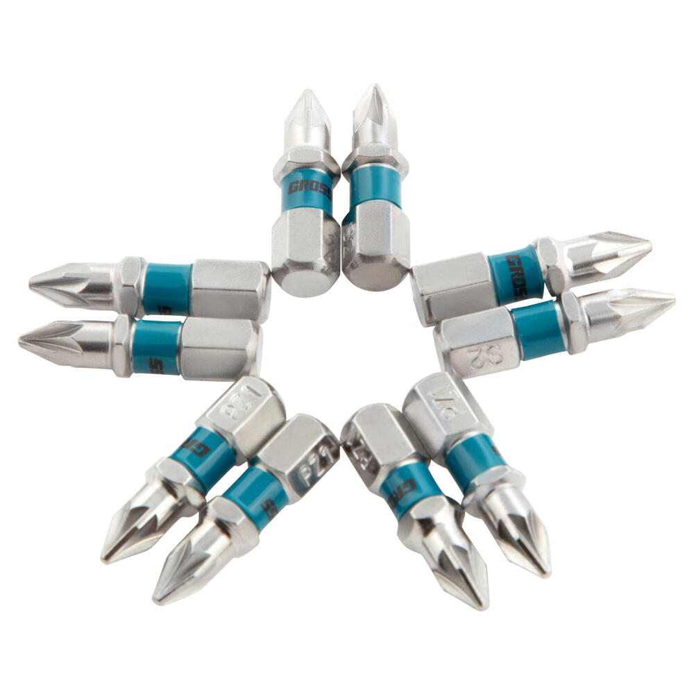 Набор бит Gross 11339 состоит из 10 насадок типоразмера PZ1 и длиной 25 мм, с хвостовиком 1/4 дюйма, изготовленных из стали S2 и предназначенных для шуруповертов. Оснастки служат для монтажа и демонтажа шурупов, саморезов и других резьбовых соединений. Шлиц PZ имеет 4 дополнительных ребра, благодаря чему предотвращается проскальзывание биты в крепеже, повышаются точность и эффективность работ.