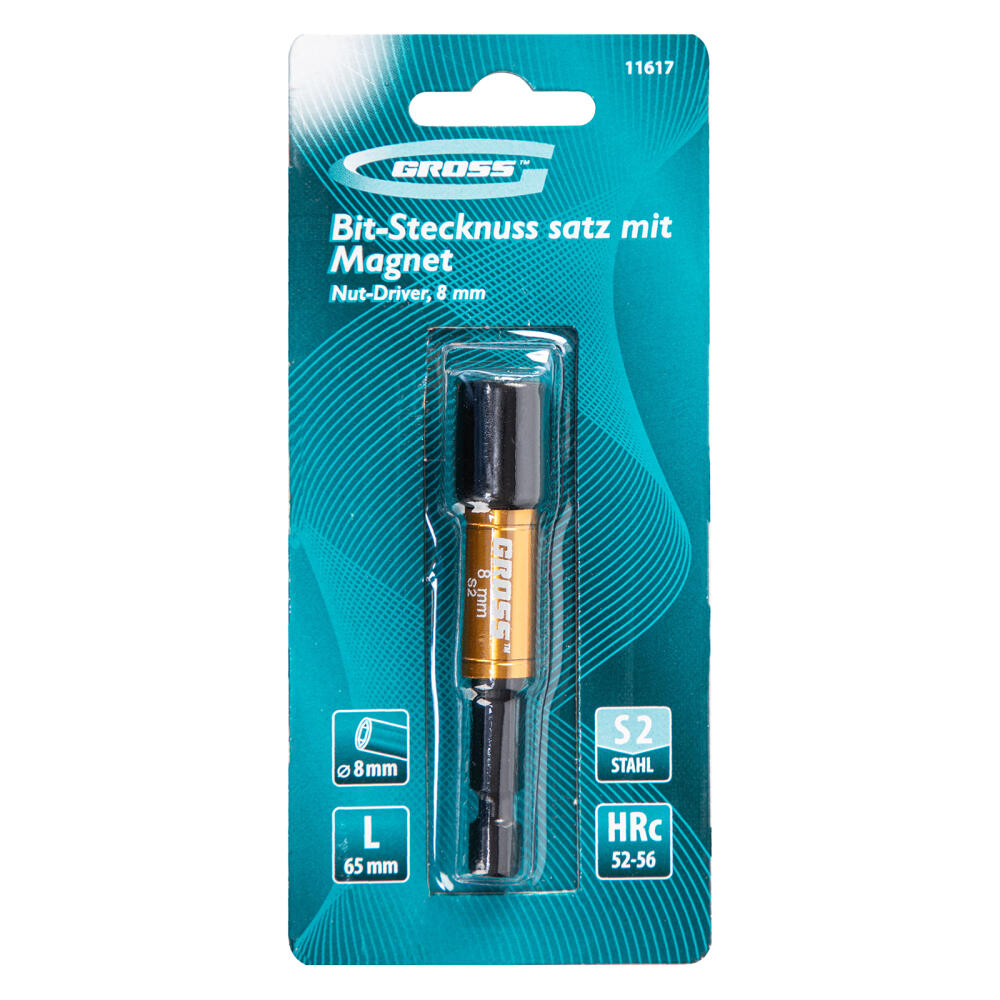 Бита с торцевой головкой Gross Nut-Driver 11617 из стали S2, размером 8 мм, с магнитом, применяется в качестве профессиональной оснастки для шуруповертов. Она предназначена для монтажа и демонтажа болтов, шурупов и кровельных саморезов, имеющих шестигранную головку. Насадка выдерживает интенсивные нагрузки и сохраняет рабочие свойства даже при длительном использовании.