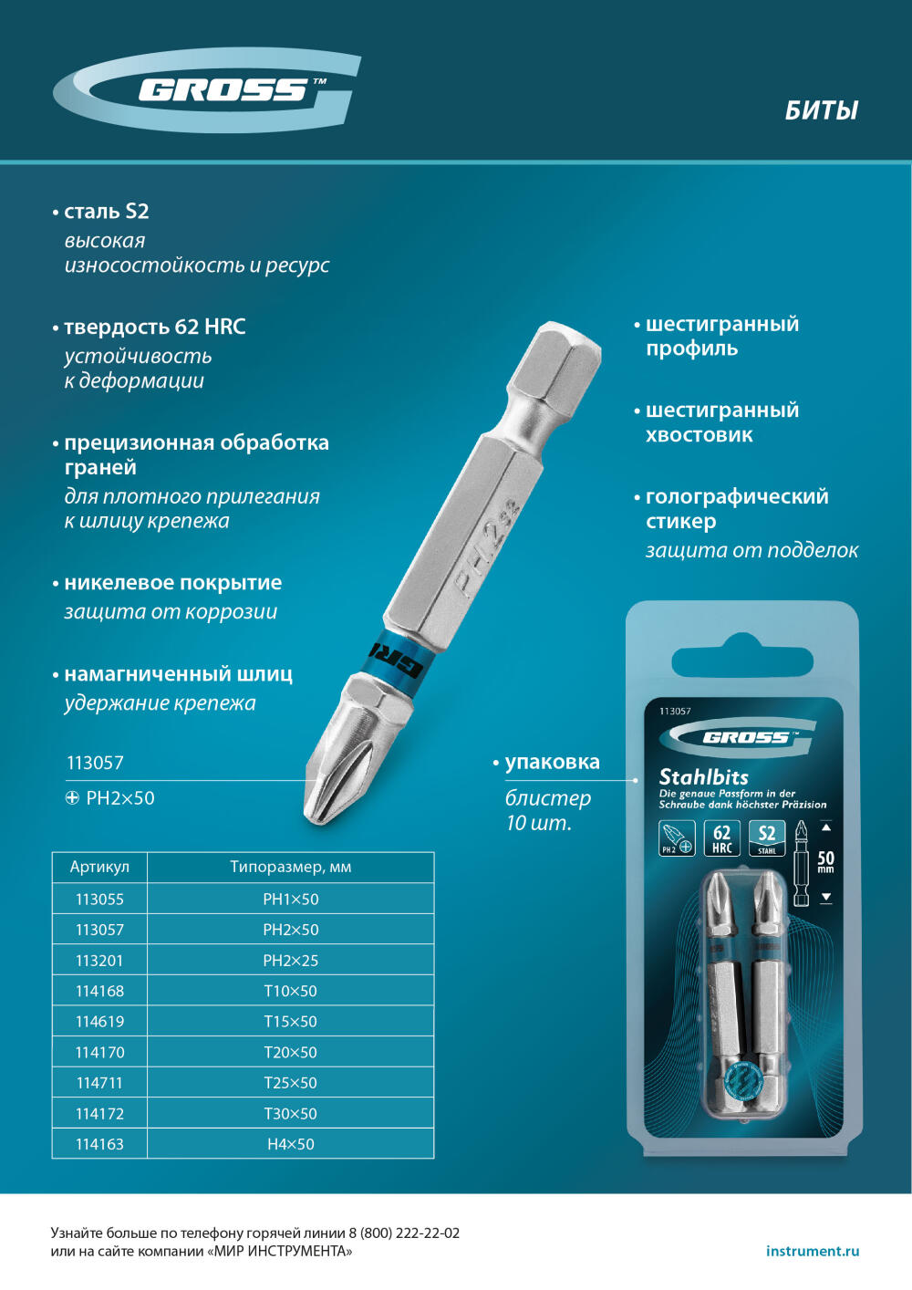 Биты Torx 10 х 50 мм Gross 114168 с шестигранным хвостовиком 1/4″, из стали S2, используются в качестве оснастки на шуруповертах. Служат для быстрого монтажа и демонтажа винтов при сборке бытовой техники и электроприборов. Набор из 2 бит универсален, подходит как для бытового, так и для профессионального применения. Благодаря конструктивной особенности шлиц в форме звезды надежно сцепляется с крепежом, нагрузка равномерно распределяется на все грани, что снижает риск соскальзывания биты и обеспечивает высокую точность работ.
