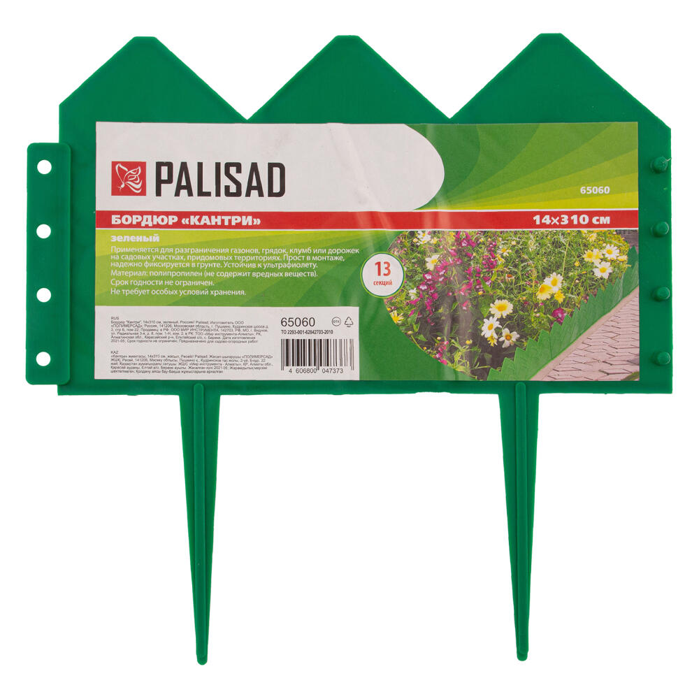 Зеленый бордюр Palisad «Кантри» 65060 размером 14 х 310 см служит для зонирования территории. В комплект входит 13 секций, с помощью которых можно оформить цветники, грядки и приствольные круги деревьев, а также разграничить дорожки и газоны.