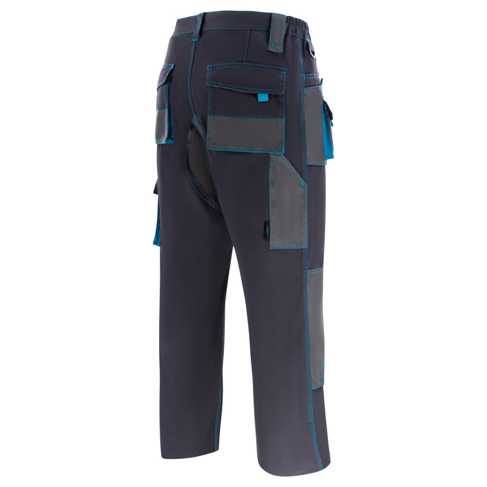Профессиональные рабочие брюки Gross 90347 размера М защищают мастера от общих производственных загрязнений и механических повреждений (истираний). Рассчитаны на рост 173-179 см и подойдут для выполнения различных видов работ в теплое время года или в отапливаемом помещении. В брюках предусмотрены защитные нашивки и 12 карманов для удобства работы.