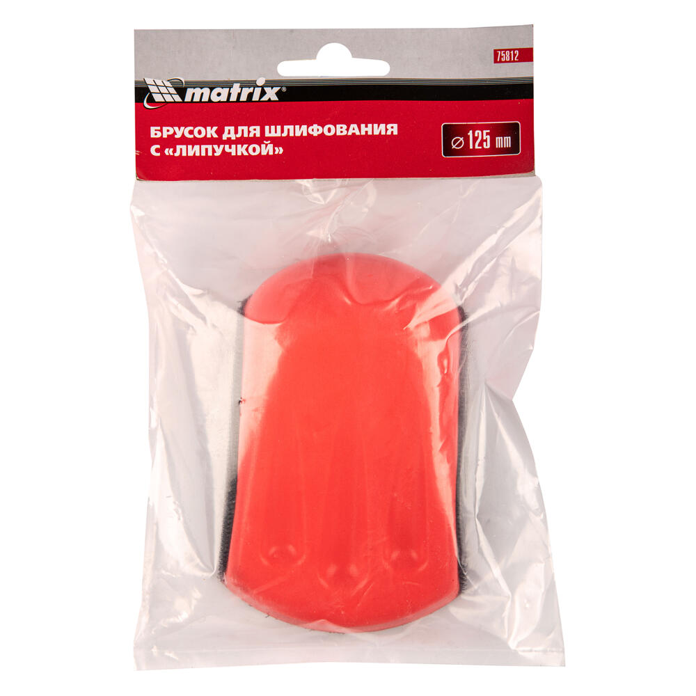 Брусок для шлифования Matrix 75812 с посадочным диаметром 125 мм, с «липучкой», — альтернатива шлифовальной машинке, используется для обработки металла, древесины, камня и пластмассы при проведении ремонтных, отделочных, малярных работ. Позволяет надежно зафиксировать абразивные круги (диски) на ворсовой основе диаметром 125 мм.