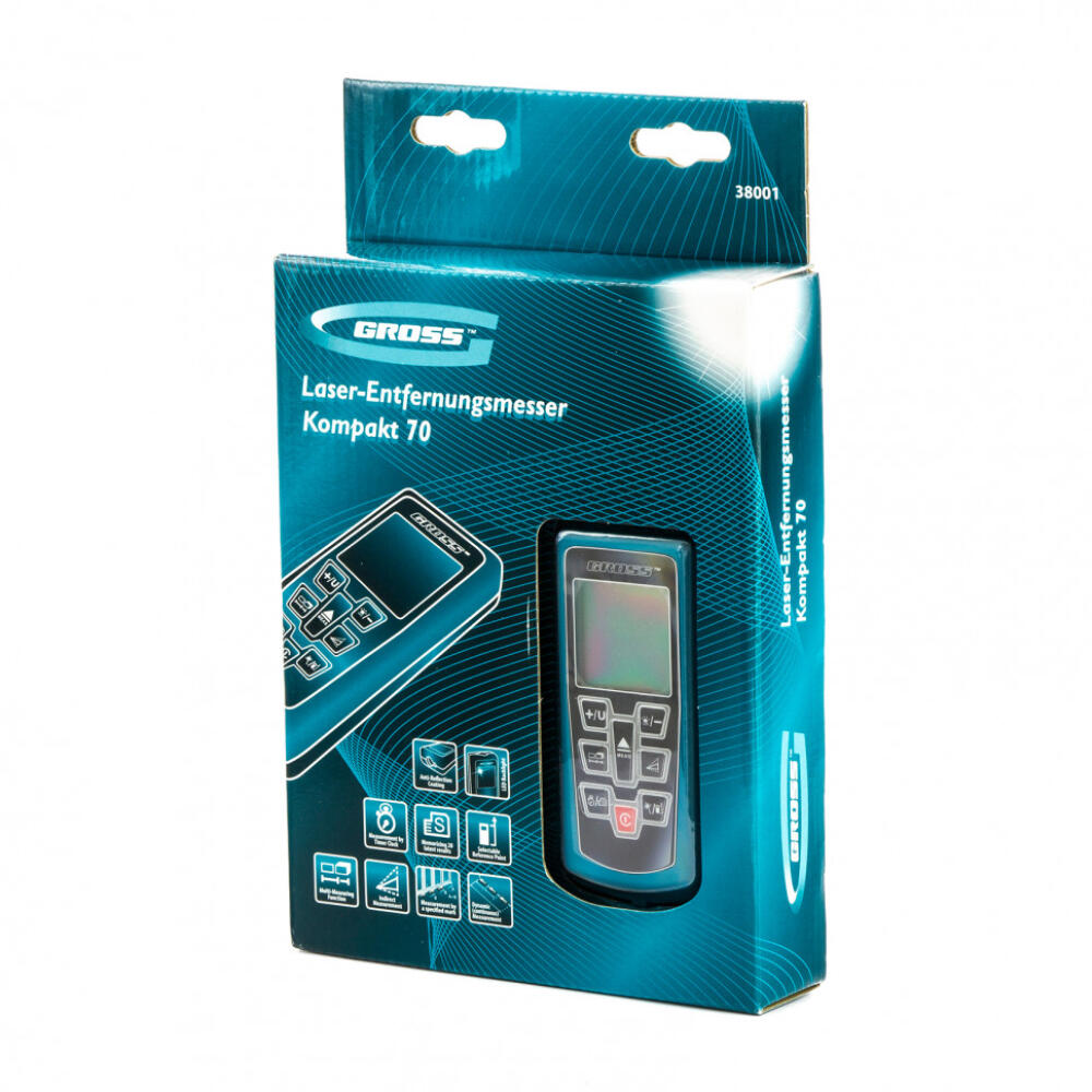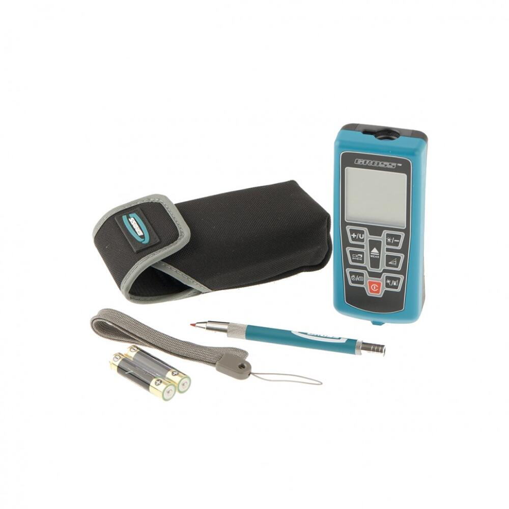 Лазерный дальномер Gross Kompakt 70 38001 с таймером и функцией косвенного измерения по теореме Пифагора предназначен для точного определения расстояния от 0,05 до 70 метров, а также площади и объема помещения. Прибор способен складывать и вычитать полученные результаты, что экономит время пользователя. Дальномер питается от 2 батареек типа AA (входят в комплект поставки). Устройство пригодится при проведении строительных, ремонтных работ и геодезических исследований.