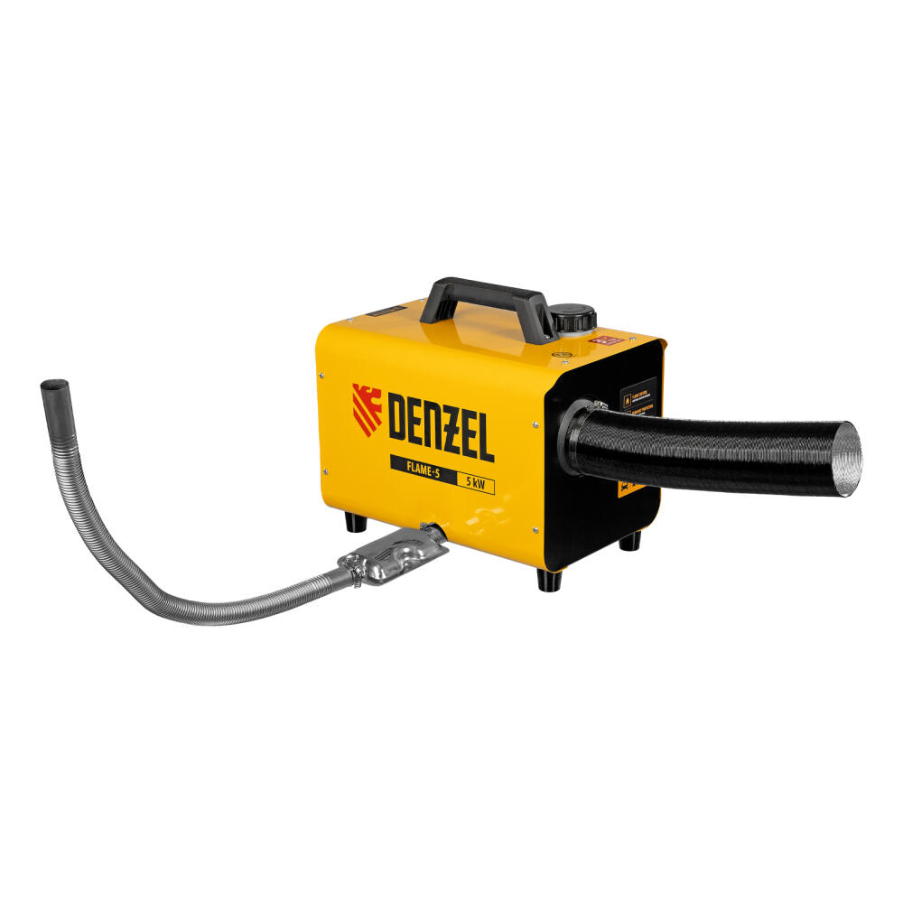 Дизельная тепловая портативная пушка Denzel Flame-5 96495 представляет собой автономный отопитель с максимальной мощностью 5 кВт, с цифровым термостатом. Работает по принципу непрямого нагрева, то есть выхлопные газы выводятся отдельно, не смешиваясь с потоком теплого воздуха. Предназначена для обогрева жилых, бытовых, подсобных и строительных помещений площадью до 50 м2. Портативную пушку размером 412 х 250 х 340 мм удобно перемещать и можно использовать в местах, удаленных от электричества, например, в поездке, походах, на рыбалке и для обогрева автомобиля.
