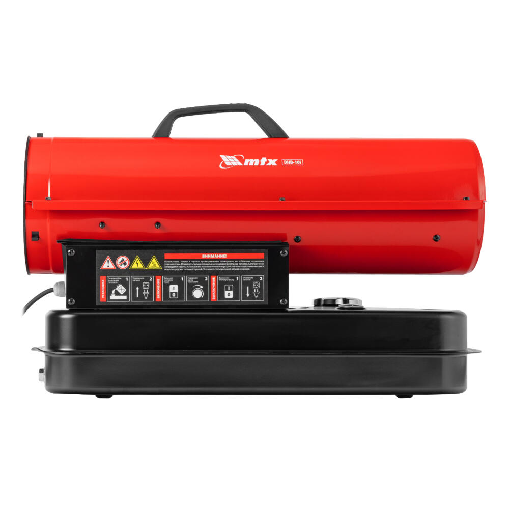 Дизельная тепловая пушка MTX DHB-10i 98904 тепловой мощностью 10 кВт и производительностью 400 м3/ч, с прямым типом нагрева и термостатом, предназначена для обогрева складов, цехов, теплиц и других нежилых помещений. Также используется на производстве и в строительстве: для прогрева бетона, просушки стен и разморозки траншей.