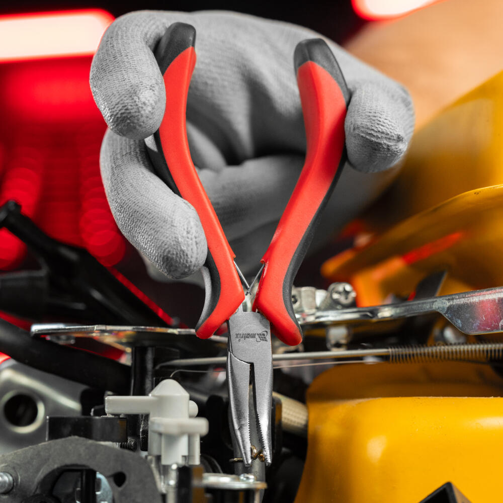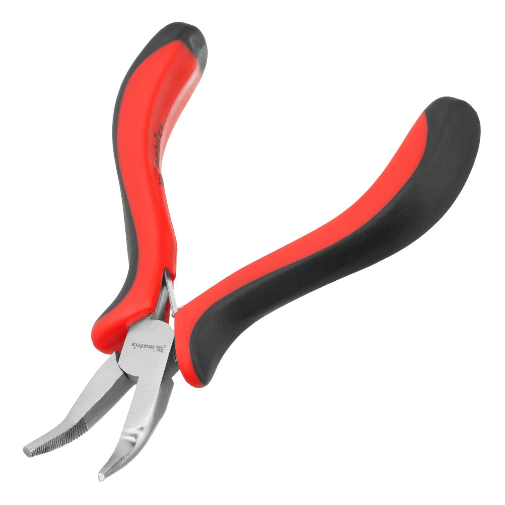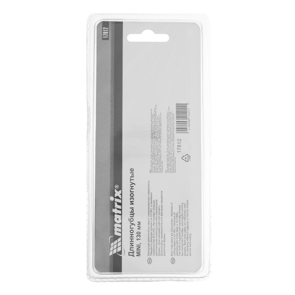 Длинногубцы изогнутые Mini, 130 мм, никелированные, авторазжим, двухкомпонентные рукоятки Matrix