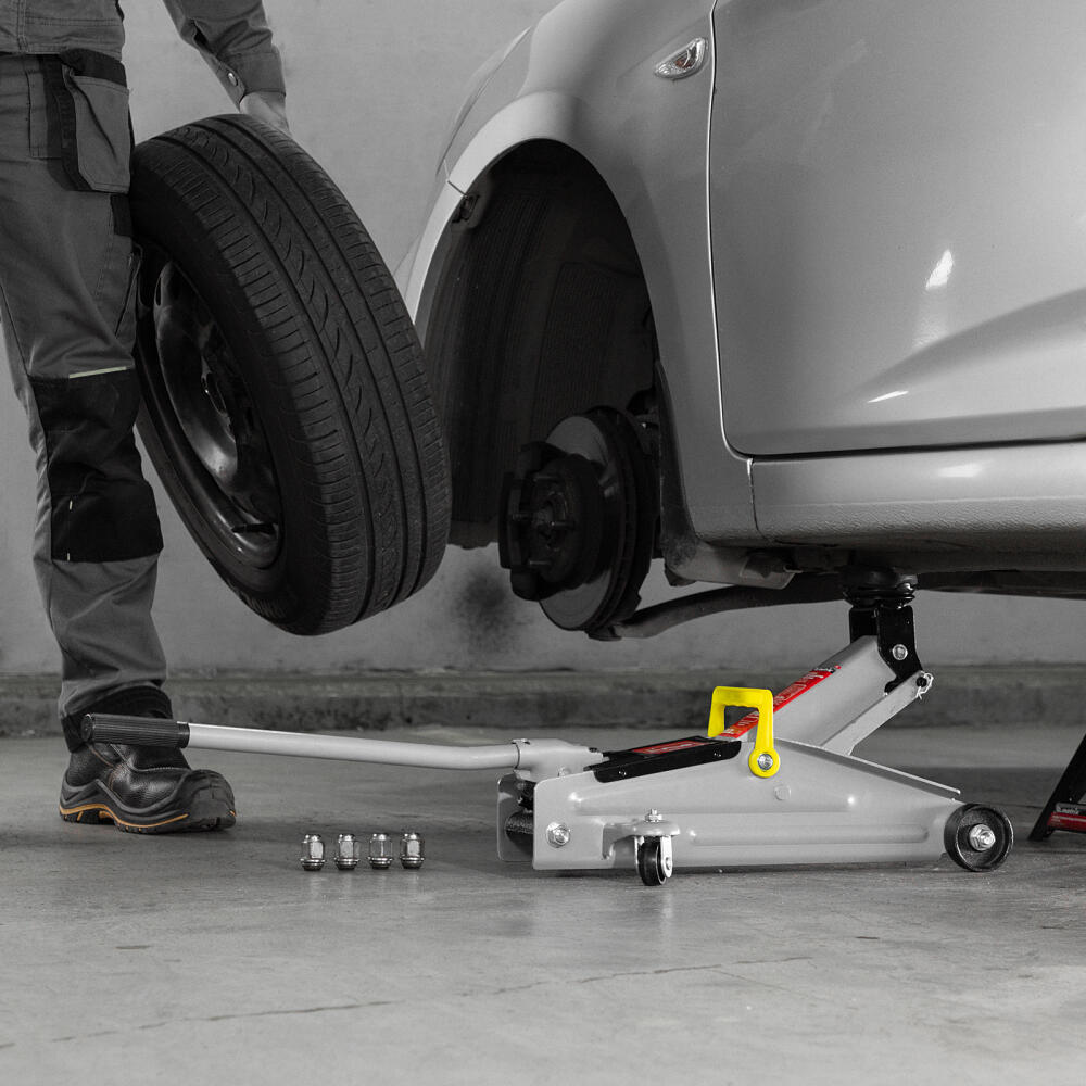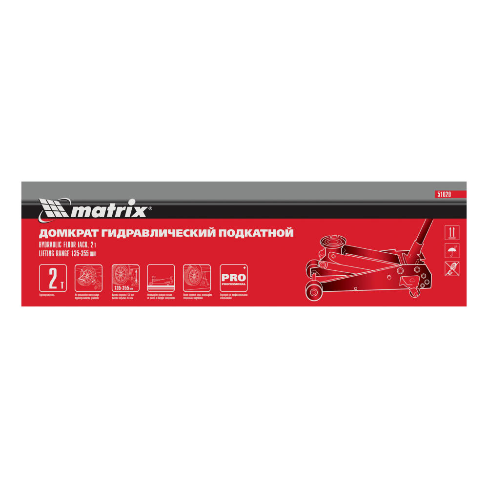 Подкатной гидравлический домкрат Matrix 51020 с высотой подхвата 135 мм, — полупрофессиональное гаражное оборудование, способное поднимать груз массой до 2 т на высоту до 355 мм. Высота подхвата 135 мм позволяет использовать домкрат для автомашин со стандартным клиренсом. Домкрат будет полезен как в автомастерской, так и в частном гараже.
