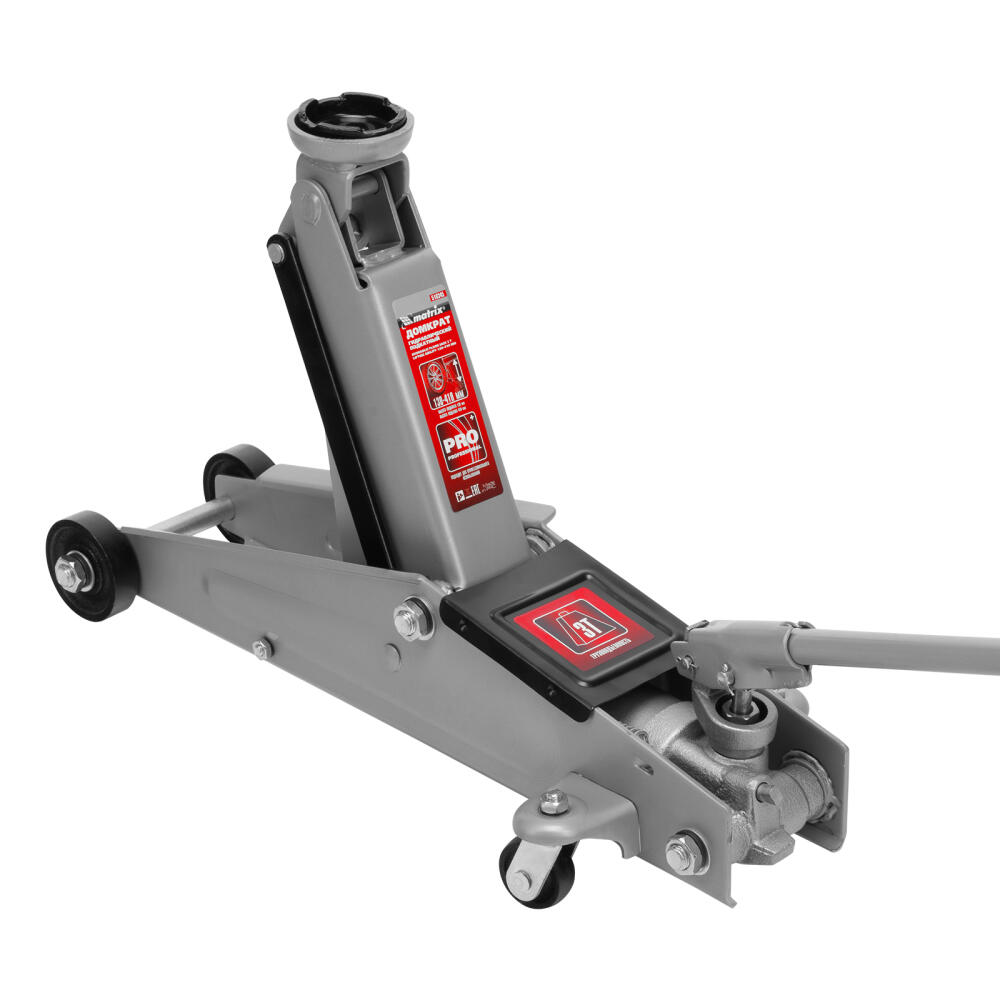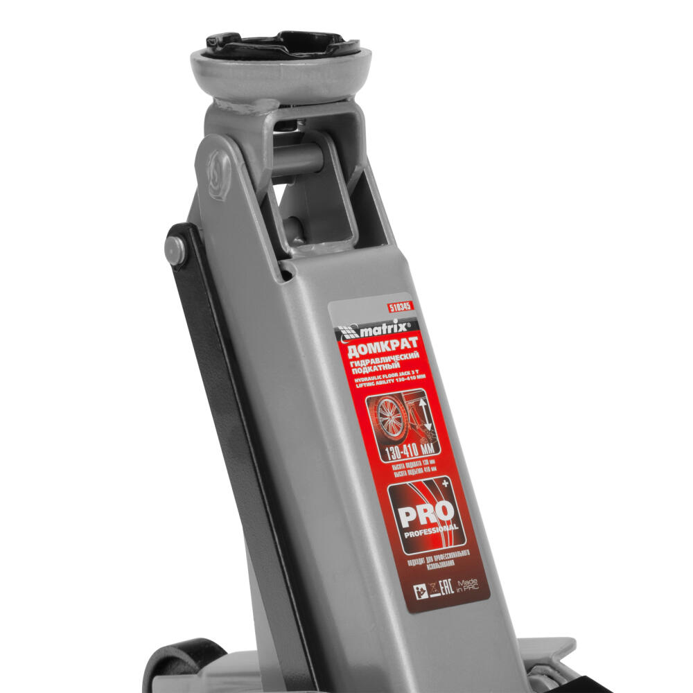 Подкатной гидравлический домкрат Matrix 510345 с поворотной ручкой, с высотой подхвата 130 мм, — полупрофессиональное гаражное оборудование, способное поднимать груз массой до 3 т на высоту до 410 мм. Высота подхвата 130 мм позволяет использовать домкрат для автомашин со стандартным клиренсом. Домкрат будет полезен как в автомастерской, так и в частном гараже.
