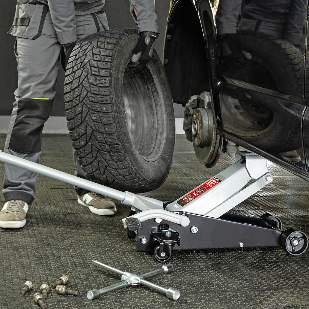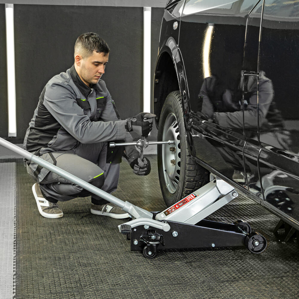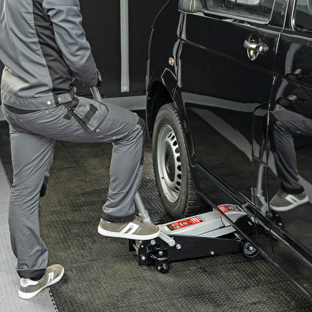 Подкатной гидравлический домкрат Matrix 51045 с педалью, с высотой подхвата 145 мм, — полупрофессиональное гаражное оборудование, способное поднимать груз массой до 3,5 т на высоту до 490 мм. Высота подхвата 145 мм позволяет использовать домкрат для автомашин со стандартным клиренсом. Домкрат будет полезен как в автомастерской, так и в частном гараже.