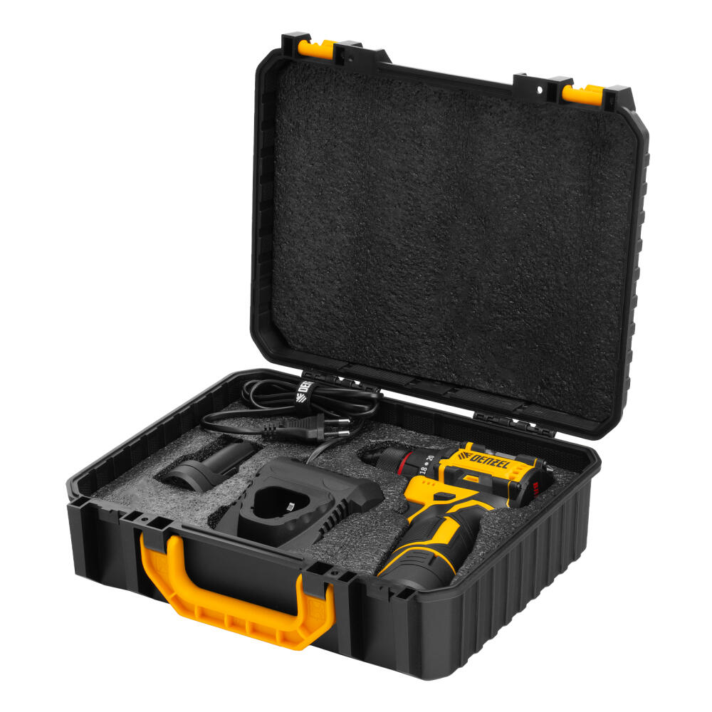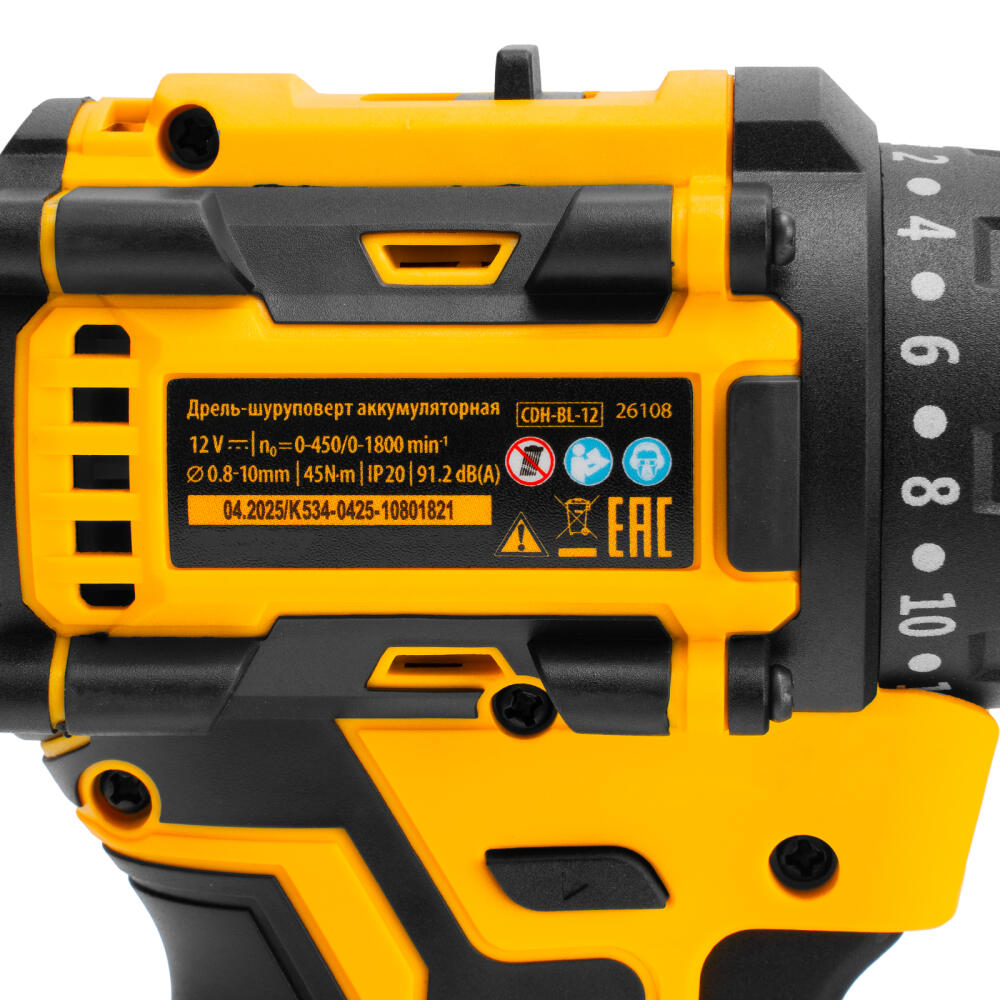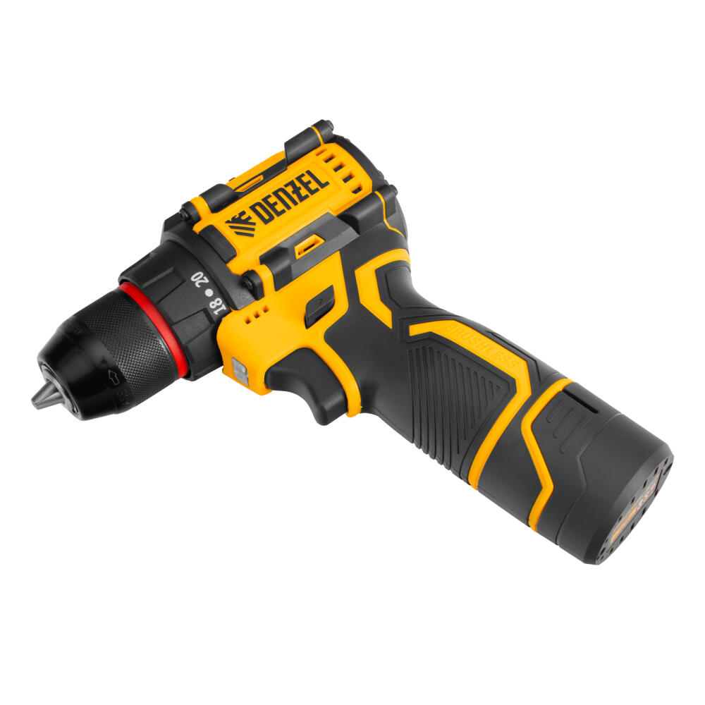 Аккумуляторная дрель-шуруповерт Denzel CDH-BL-12 26108 используется для закручивания и откручивания резьбового крепежа, а также для сверления отверстий в древесине, металле, пластмассе и других материалах. Максимальный диаметр сверления в металле составляет 10 мм, в древесине — 25 мм. Работает от аккумулятора Li-Ion 12 В емкостью 2 А·ч. Мощный бесщеточный двигатель позволяет развивать крутящий момент до 45 Н·м для эффективного применения в быту.