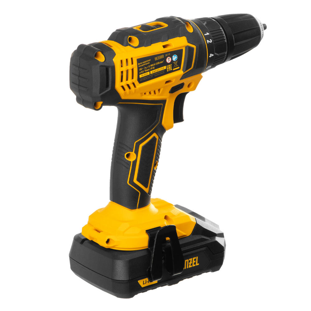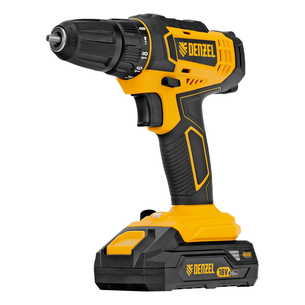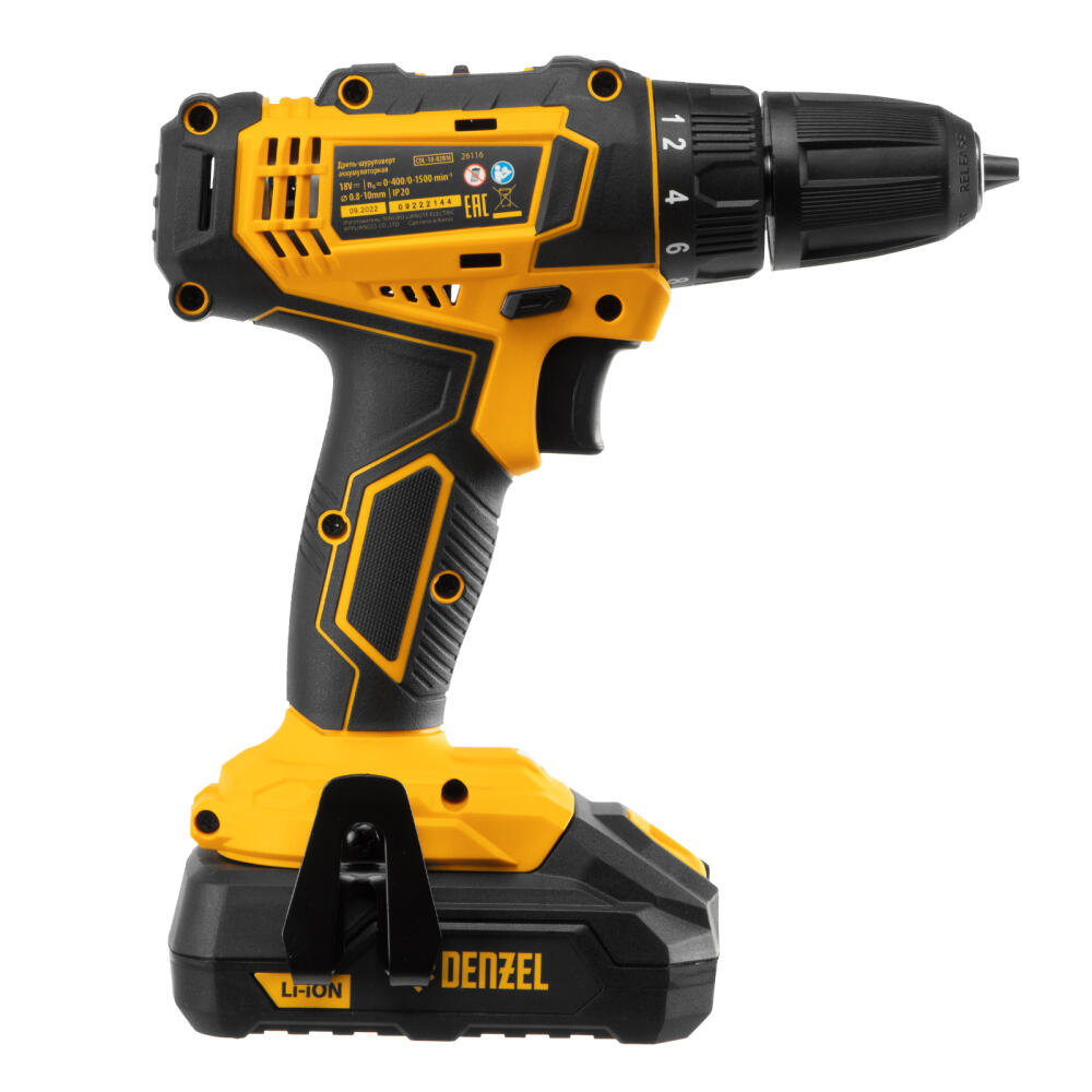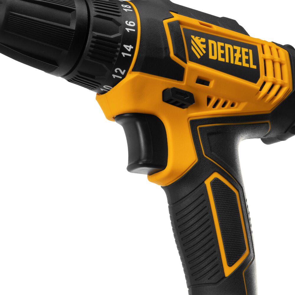 Аккумуляторная дрель-шуруповерт Denzel CDL-18-02BM 26116 с Li-Ion аккумуляторами 18 В предназначена для ввинчивания и вывинчивания винтов и шурупов, а также получения отверстий в различных конструкционных материалах: металле, древесине, пластмассе и т.п. Оптимальна для интенсивного использования как в быту, так и на строительных объектах, пригодится в процессе ремонта, при сборке мебели и т.д. Система защиты от перегрузки, перегрева, глубокой разрядки и нежелательного перезаряда обеспечивает долговечность инструмента и комфортную работу.