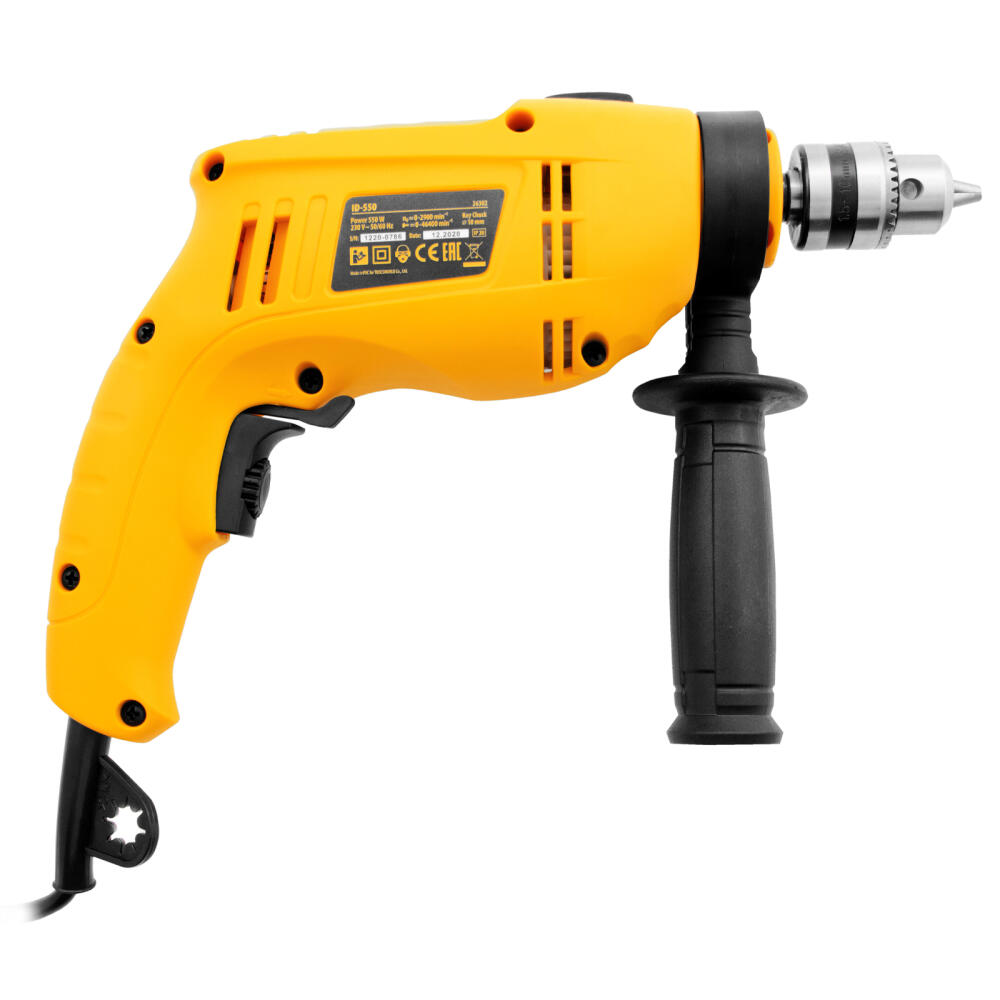 Ударная дрель Denzel ID-550 26302 мощностью 550 Вт поддерживает скорость вращения оснастки 0-2900 об/мин и частоту ударов 46400 уд/мин. Используется для ручного или ударного сверления металла, древесины, легкого бетона, кирпича, плитки или пластика. Сверлит отверстия диаметром до 20 мм в древесине, до 10 мм в бетоне и до 10 мм в металле. Эффективное сверление твердых материалов обеспечивает массивный промщит ударного механизма. Дрель работает со сверлами с диаметром хвостовика 1,5-10 мм, что позволяет эффективно решать различные задачи.
