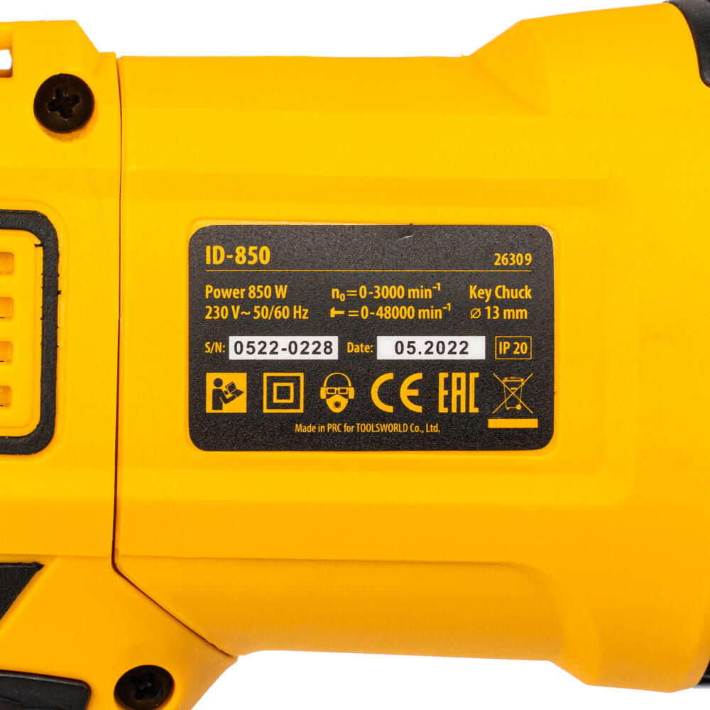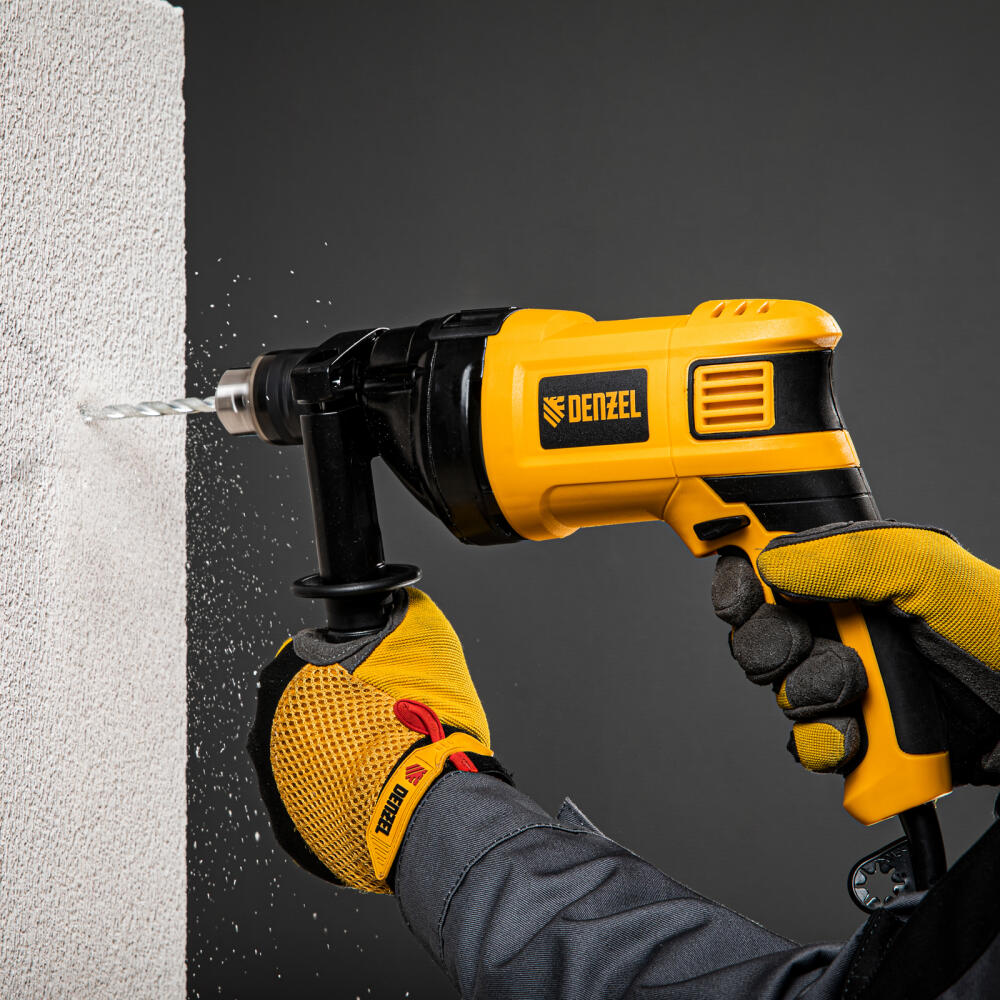 Ударная дрель Denzel ID-850 26309 мощностью 850 Вт поддерживает скорость вращения оснастки 0-3000 об/мин и частоту ударов 48000 уд/мин. Используется для ручного или ударного сверления металла, древесины, легкого бетона, кирпича, плитки или пластика. Сверлит отверстия диаметром до 25 мм в древесине, до 13 мм в бетоне и до 13 мм в металле. Эффективное сверление твердых материалов обеспечивает массивный промщит ударного механизма. Дрель работает со сверлами с диаметром хвостовика 1,5-13 мм, что позволяет эффективно решать различные задачи.