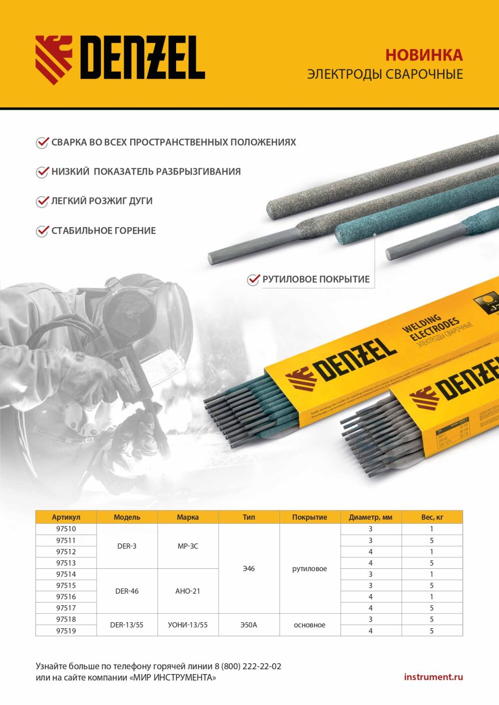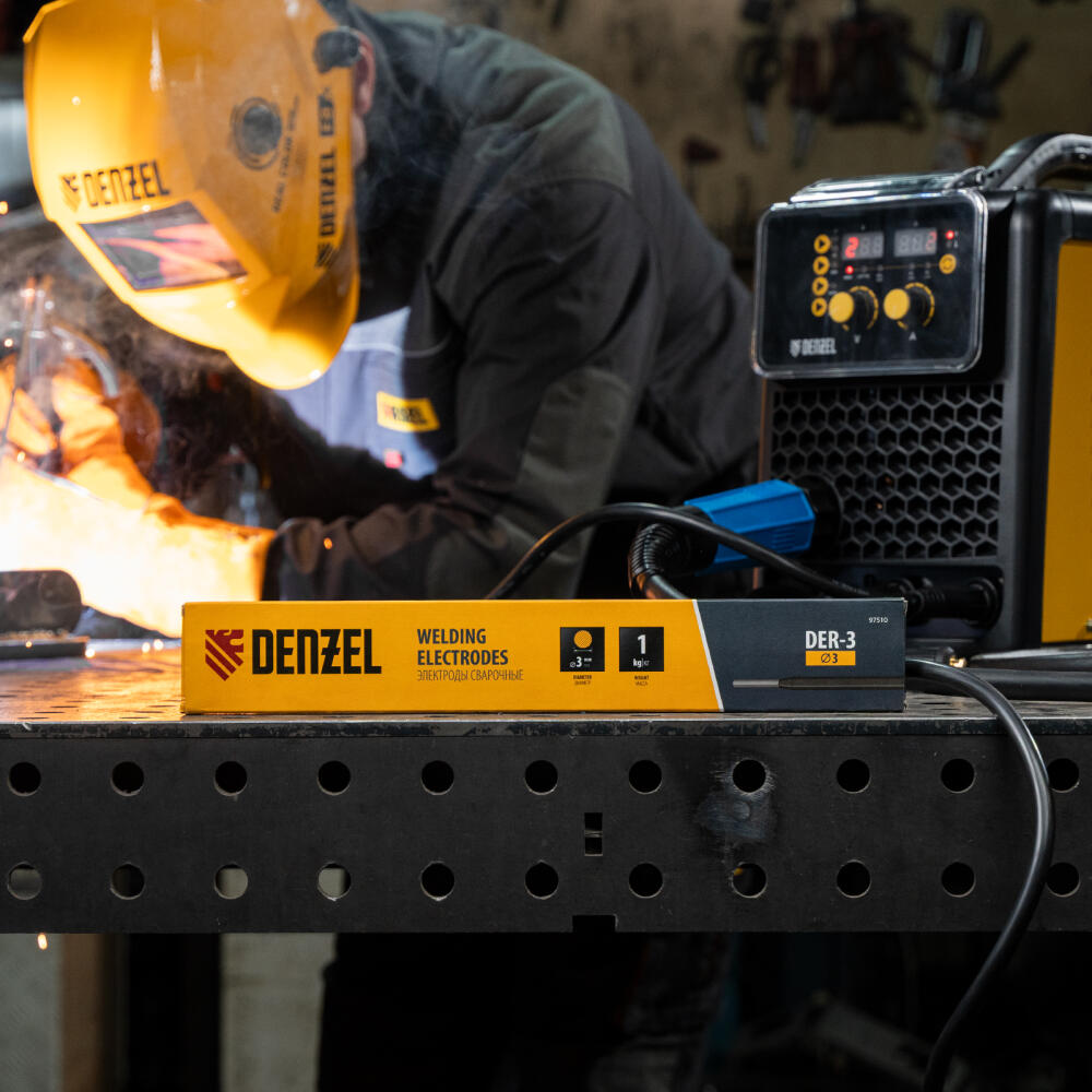 Электроды Denzel DER-3 97510 диаметром 3 мм, с рутиловым покрытием синего цвета, 1 кг в упаковке, предназначены для ручной дуговой сварки деталей из углеродистых и низколегированных конструкционных сталей при максимальном токе 140 А. Подходят для заготовок толщиной 3-5 мм. Позволяют формировать неповоротные стыки, что важно для проведения ремонтных работ с резервуарами под давлением. Сварной шов устойчив к появлению дефектов: пор, трещин и шлаковых включений. Электроды применяются в нефтегазовой, судо- и машиностроительной промышленности, пригодятся также в быту.