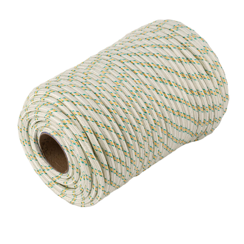 Плетеный капроновый фал Сибртех 93971 с сердечником, 24-прядный, длиной 100 м и диаметром 10 мм, используется для подъема и закрепления грузов, установки различных конструкций. Востребован в сельском хозяйстве, строительстве, нефтяной промышленности, на транспорте, в спорте, рыболовстве. Также применяется в ходе спасательных работ. Шнур имеет полиамидный сердечник, обладает высокой упругостью и выдерживает разрывную нагрузку 1300 кгс.
