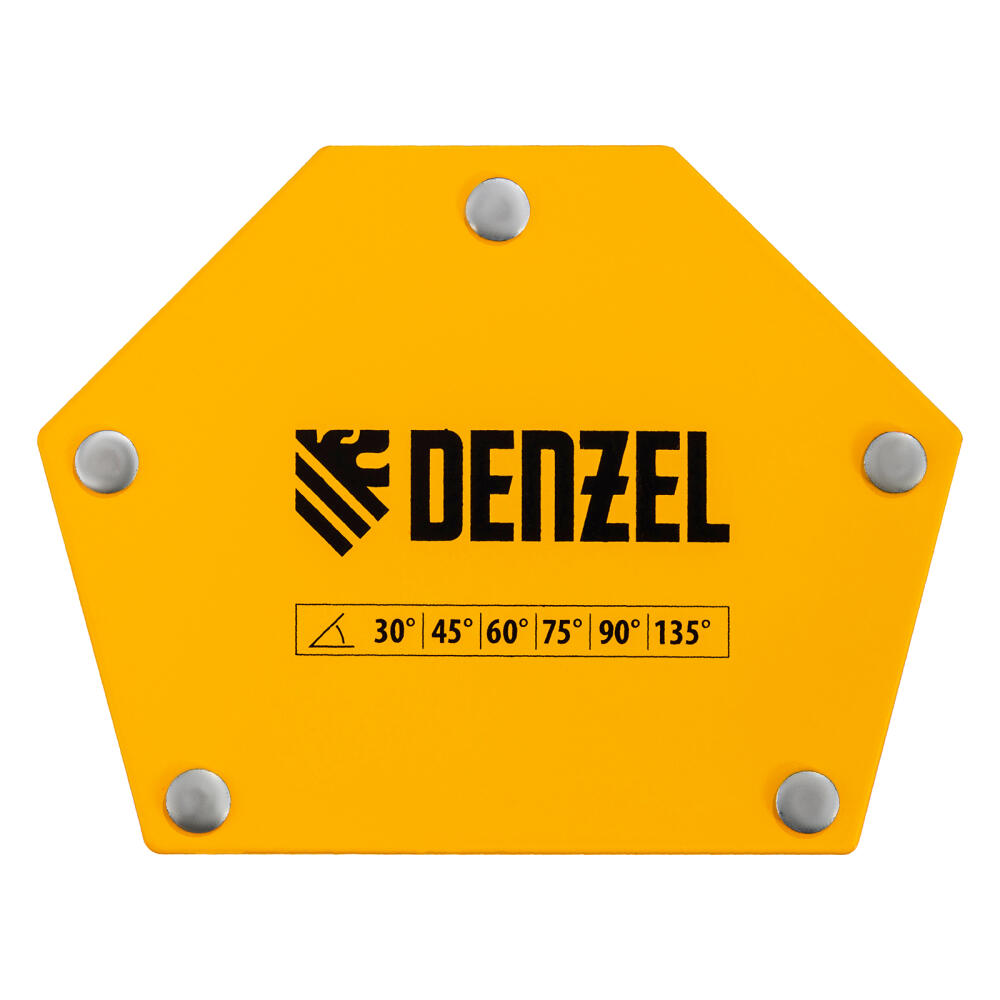 Фиксатор магнитный Denzel 97554 выдерживает усилие 50 LB (23 кг), позволяет соединять металлические детали разного размера под углом 30°, 45°, 60°, 75°, 90° и 135° и используется при проведении сварочных работ.