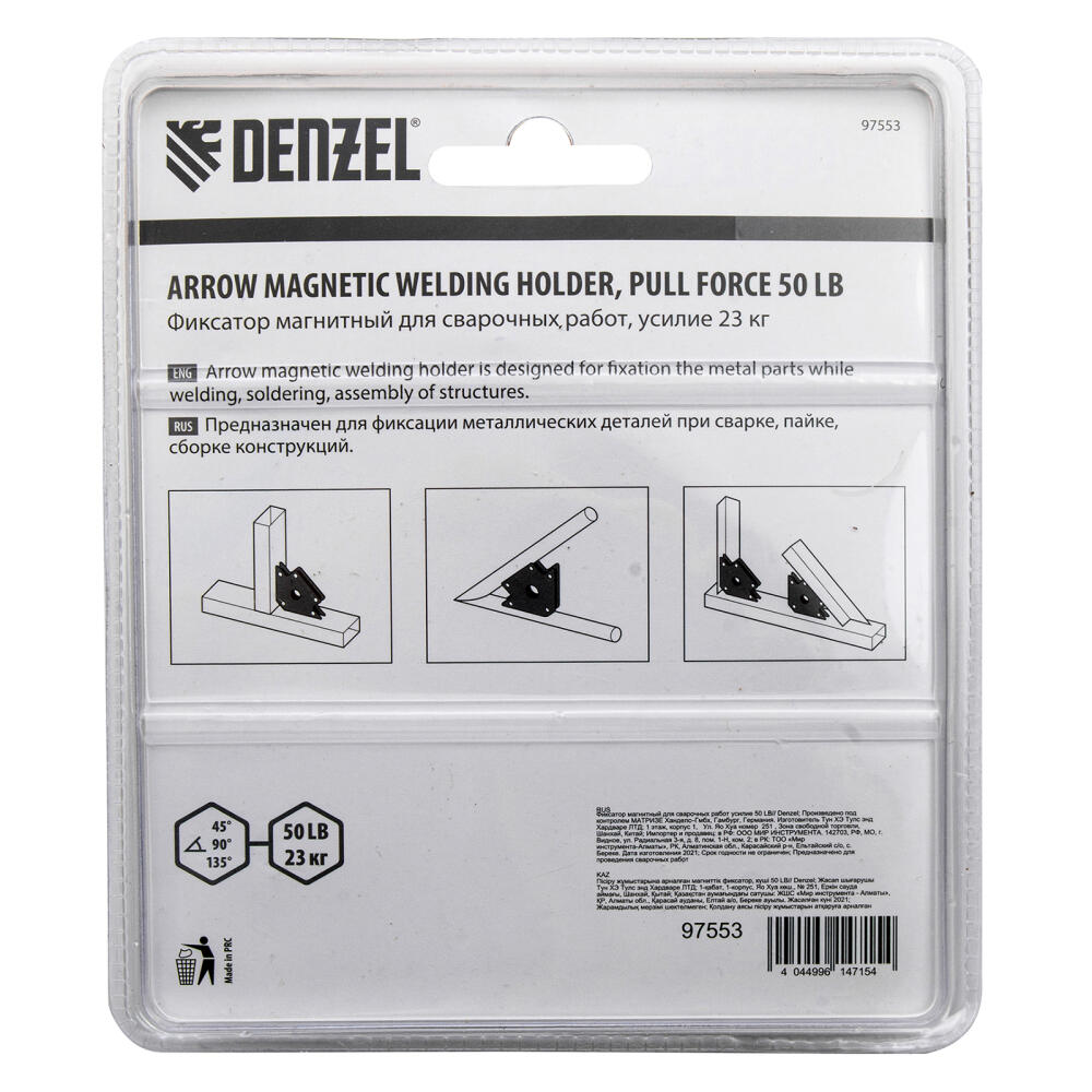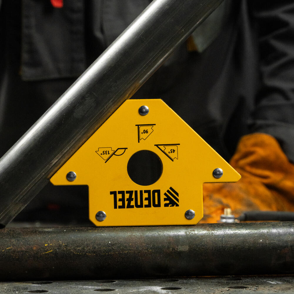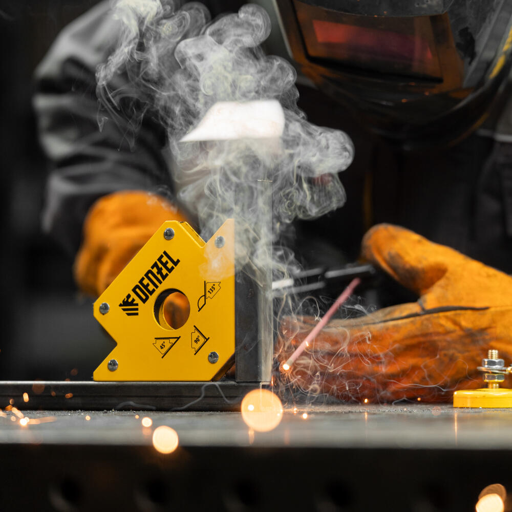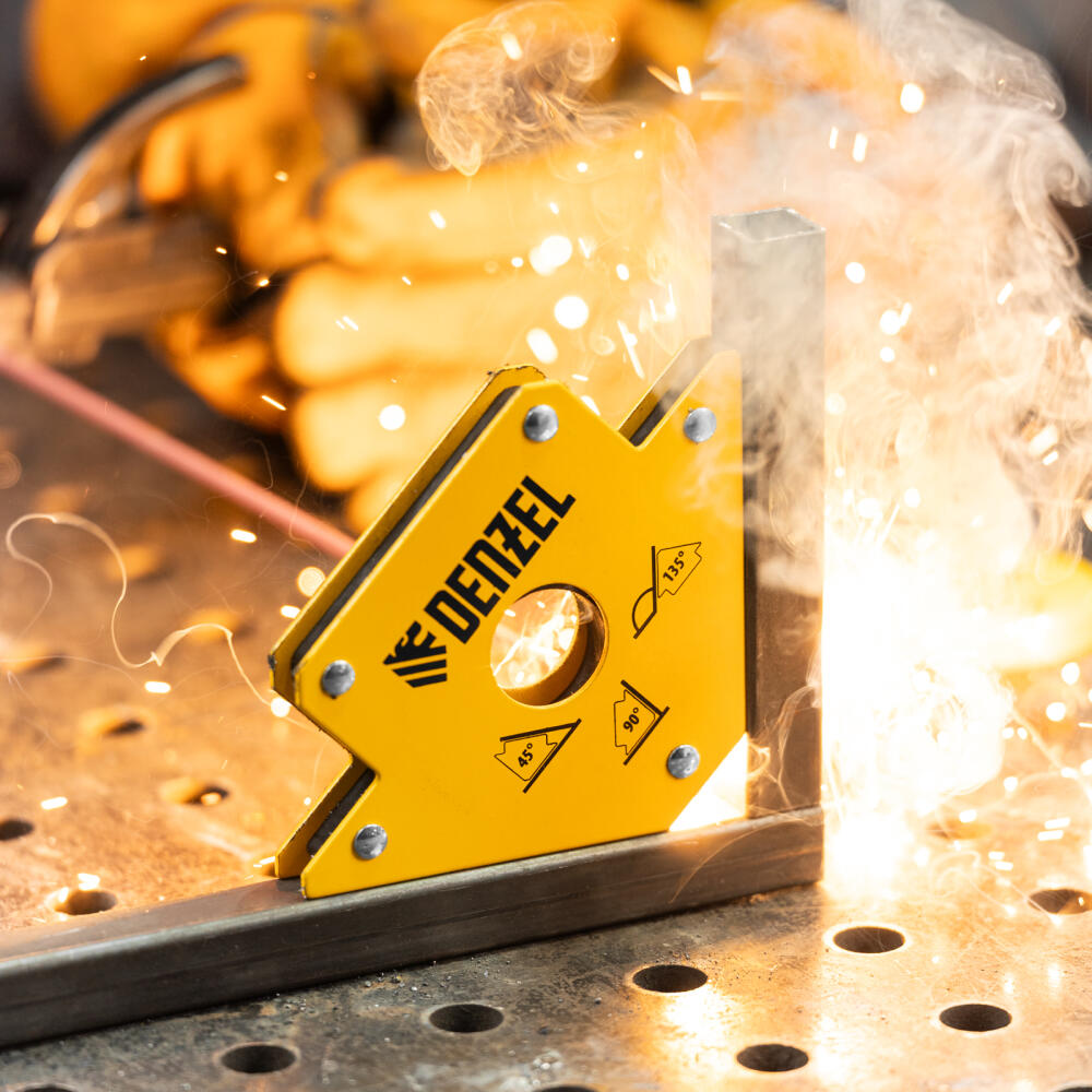 Магнитный фиксатор Denzel 50 LB 97553 значительно упрощает проведение сварочных и паяльных работ с металлическими профилями, уголками, трубами прямоугольной и круглой формы, пластинами и другим типом металла. Он позволяет быстро и легко зафиксировать конструкцию весом до 23 кг под необходимым углом и работать без риска ее падения или смещения.