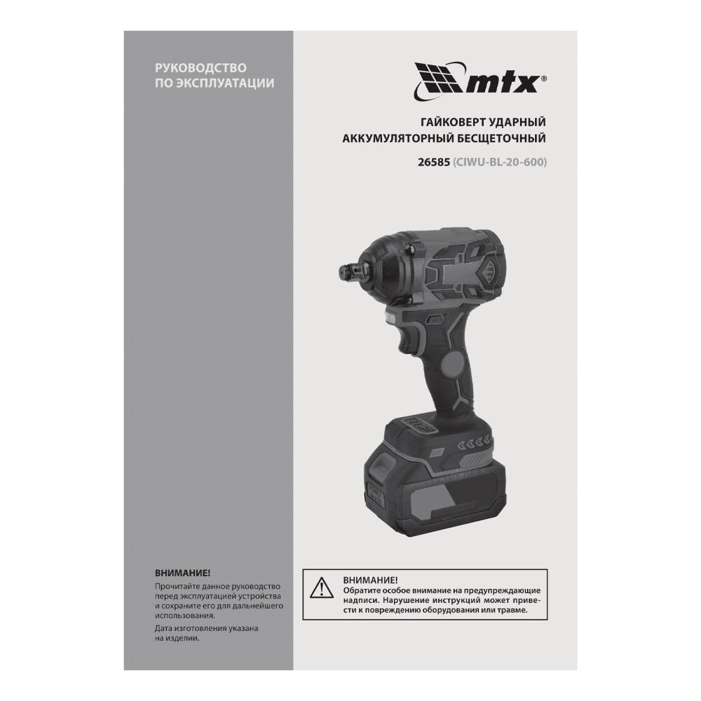 Ударный аккумуляторный гайковерт MTX CIWU-BL-20-600 26585 с бесщеточным двигателем предназначен для закручивания и откручивания резьбового крепежа: болтов, гаек и т.д. Питается от аккумулятора Li-Ion 20 В. Предусмотрено 3 режима работы (при вращении по часовой стрелке), ударный механизм упрощает работу с туго затянутым крепежом. Максимальная величина крутящего момента составляет 600 Н·м, что обеспечивает эффективность работы. Инструмент пригодится в гараже и на строительной площадке.