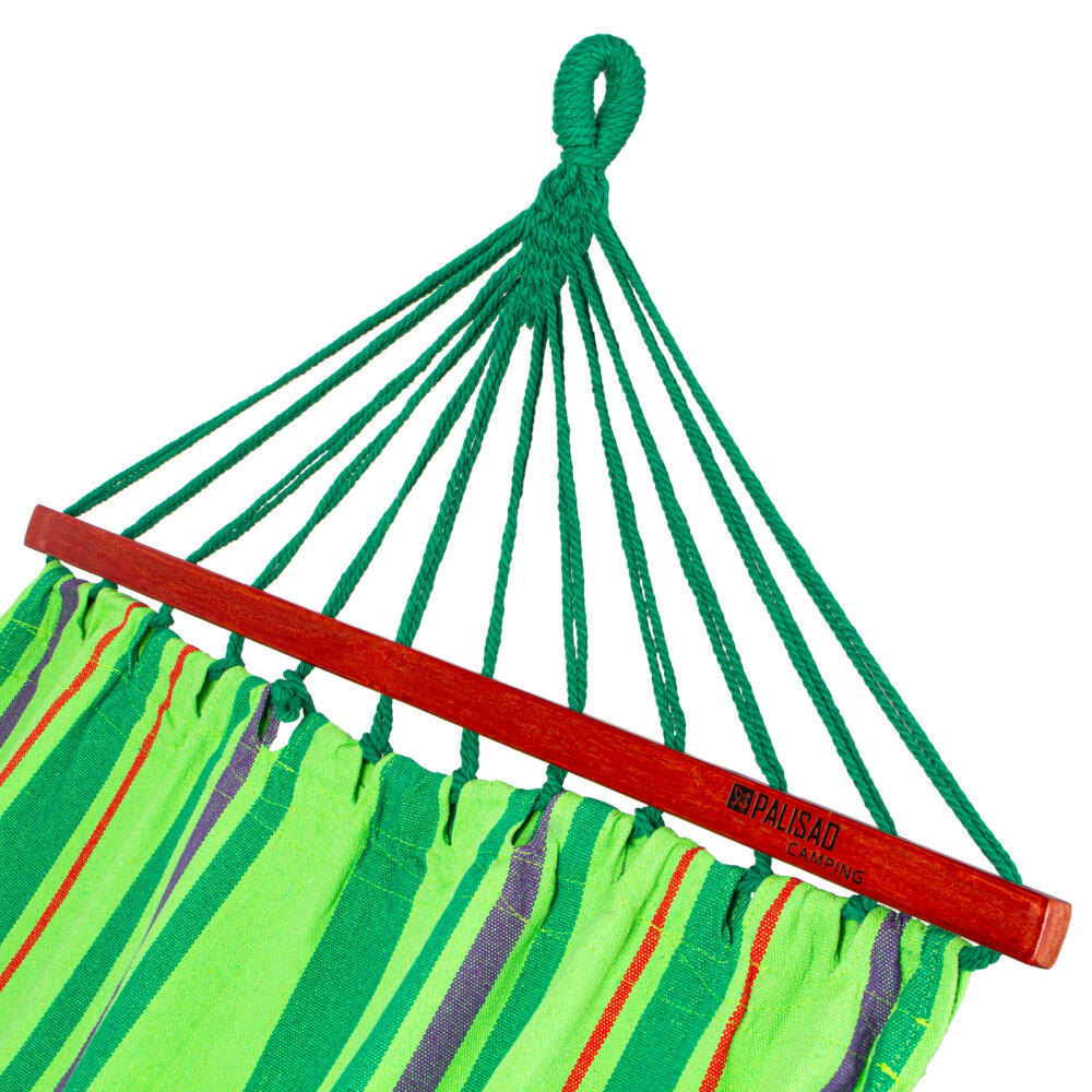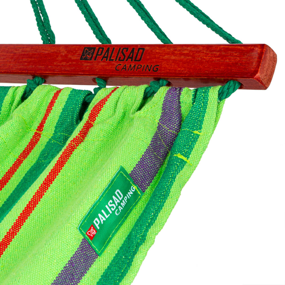 Гамак Camping Palisad 69586 размером 200 х 100 см, с деревянными планками, сделает пребывание на природе комфортным. Поможет расслабиться и приятно провести время за чтением, подарит освежающий сон, а также обеспечит спокойную работу за ноутбуком на свежем воздухе.