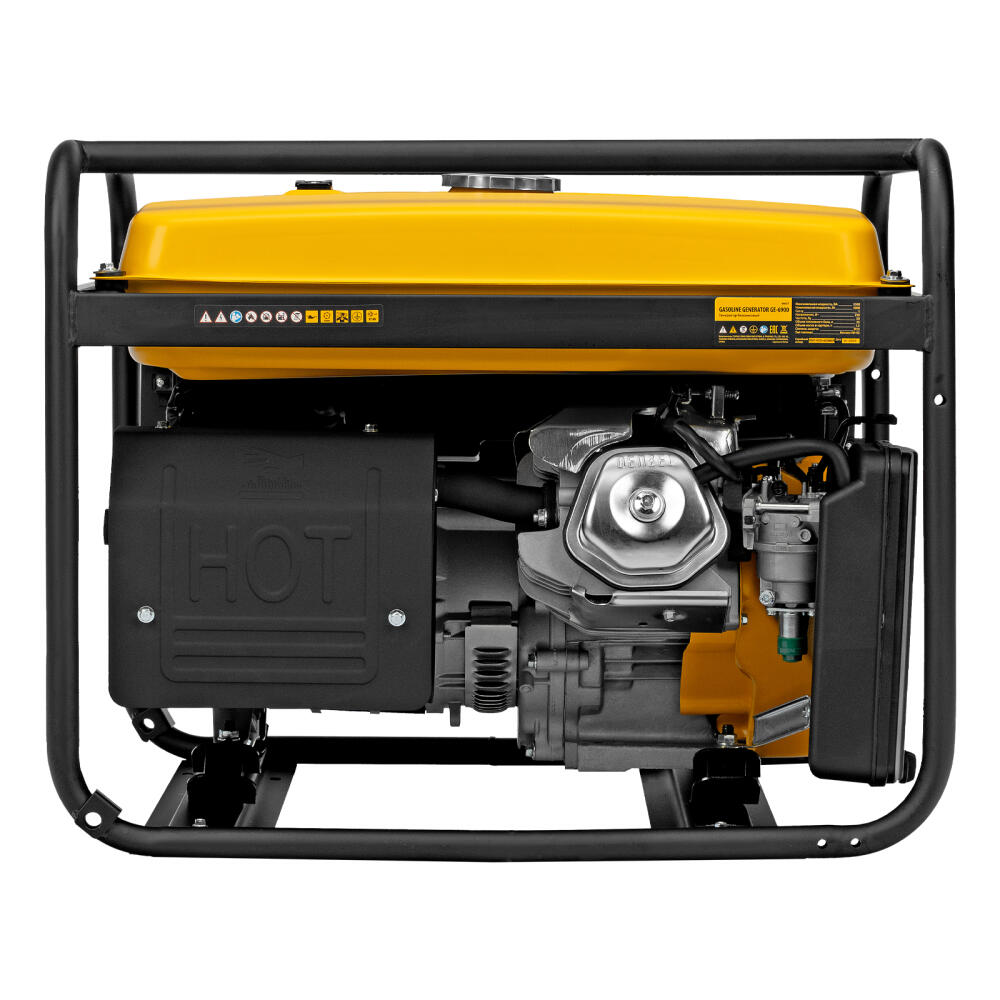Бензиновый генератор Denzel GE 6900 94637 мощностью 5,5 кВт, 220 В / 50 Гц, с ручным стартом и баком объемом 25 л, подходит для использования в загородном доме, в торговой точке, на стройке или предприятии. Одновременно к нему можно подключить, например, 4 лампы накаливания, холодильник, телевизор и чайник. Силовая розетка позволяет подключать мощное электрооборудование. Полного бака хватает на 10 ч работы без дозаправки.