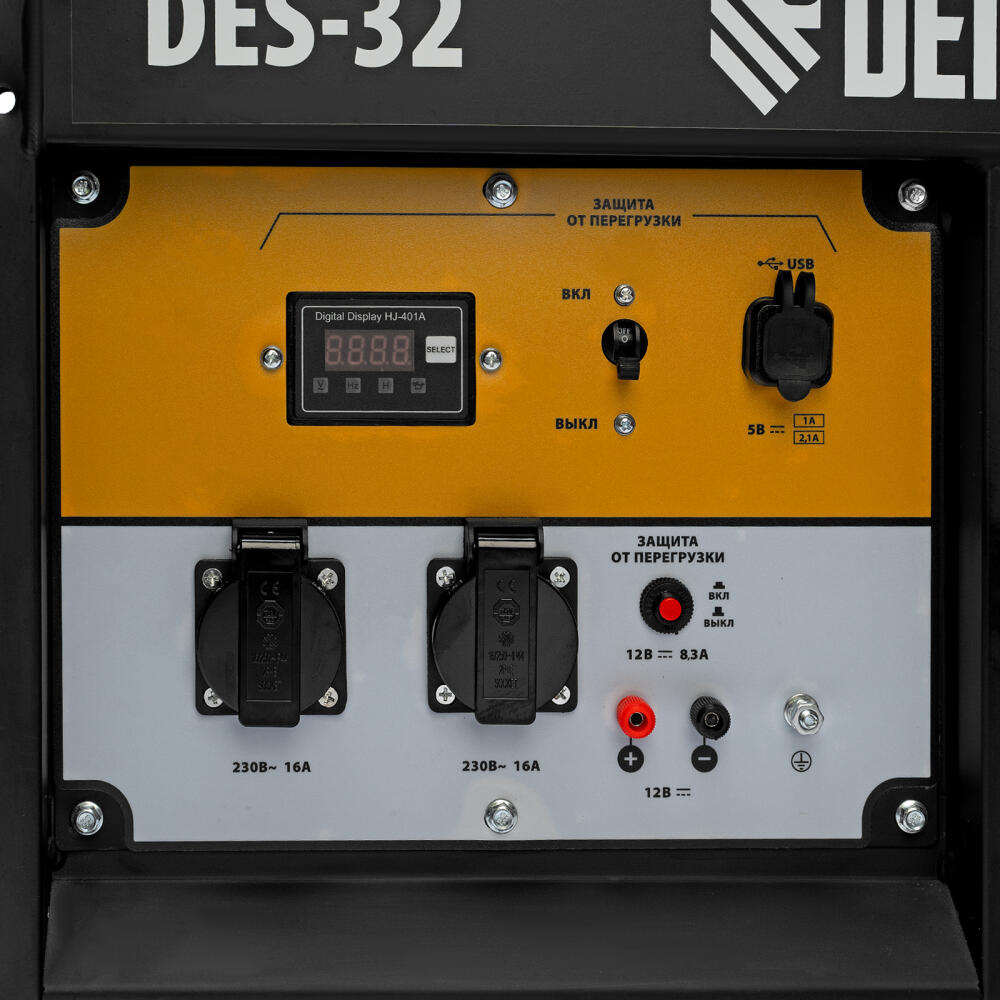 Генератор дизельный Denzel DES-32 94411 с объемом топливного бака 11 л, с ручным стартером, имеет максимальную выходную мощность 3,2 кВт и поддерживает напряжение в сети 230 В. Используется для снабжения энергией потребителей однофазного тока (осветительных приборов, бытовой техники, электроинструмента) при отсутствии доступа к стационарному источнику питания. Для подключения электроприборов служат 2 розетки 230 В/16 А. Клеммы постоянного тока 12 В позволяют заряжать автомобильные аккумуляторы, а двойной выход USB 5 В предназначен для подключения мобильных устройств (планшетов, смартфонов и т. д.). Генератор пригодится в загородном доме.