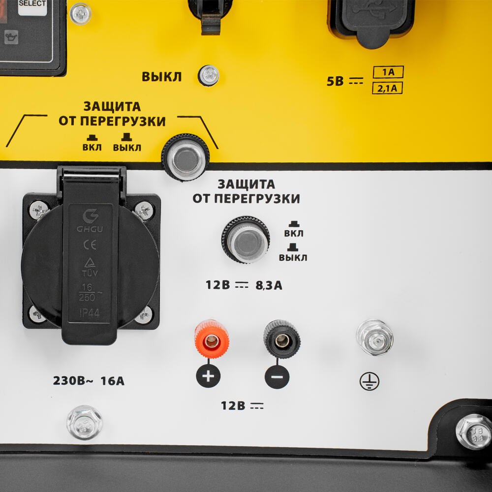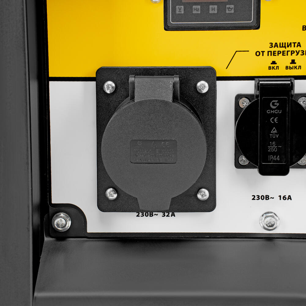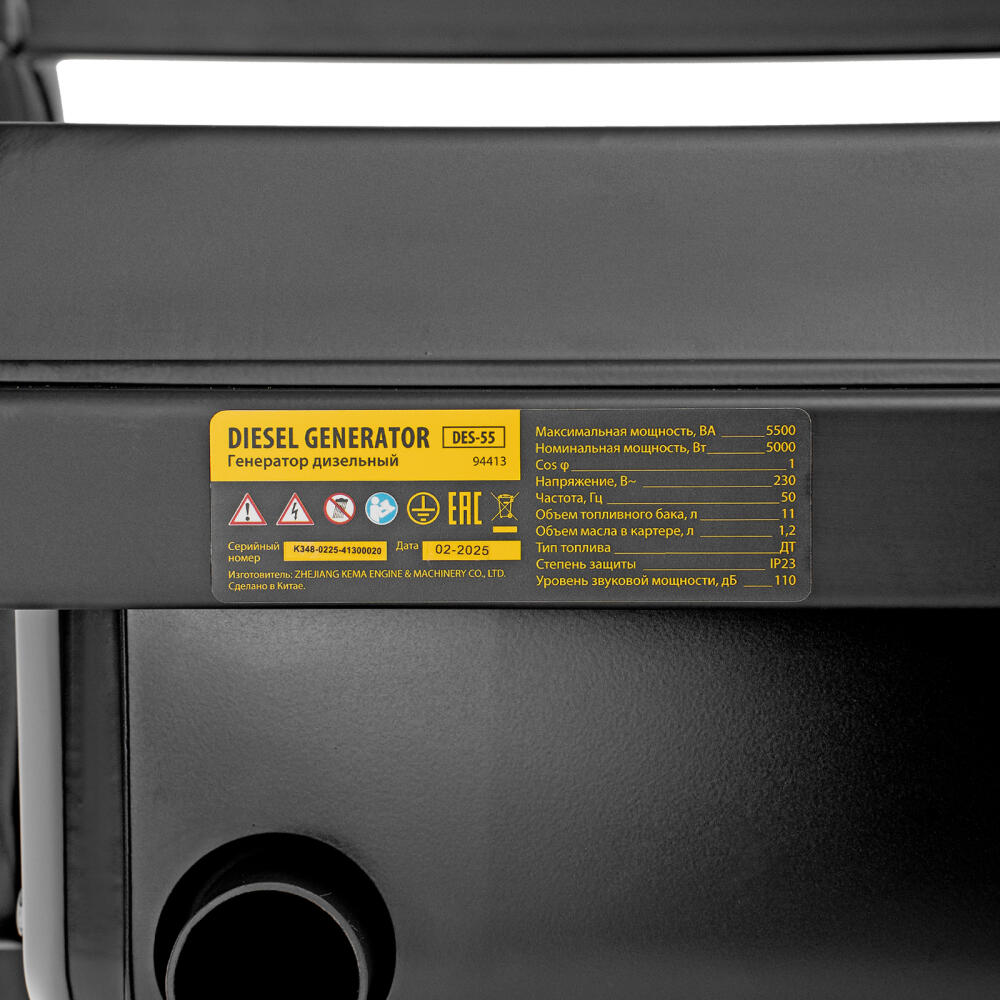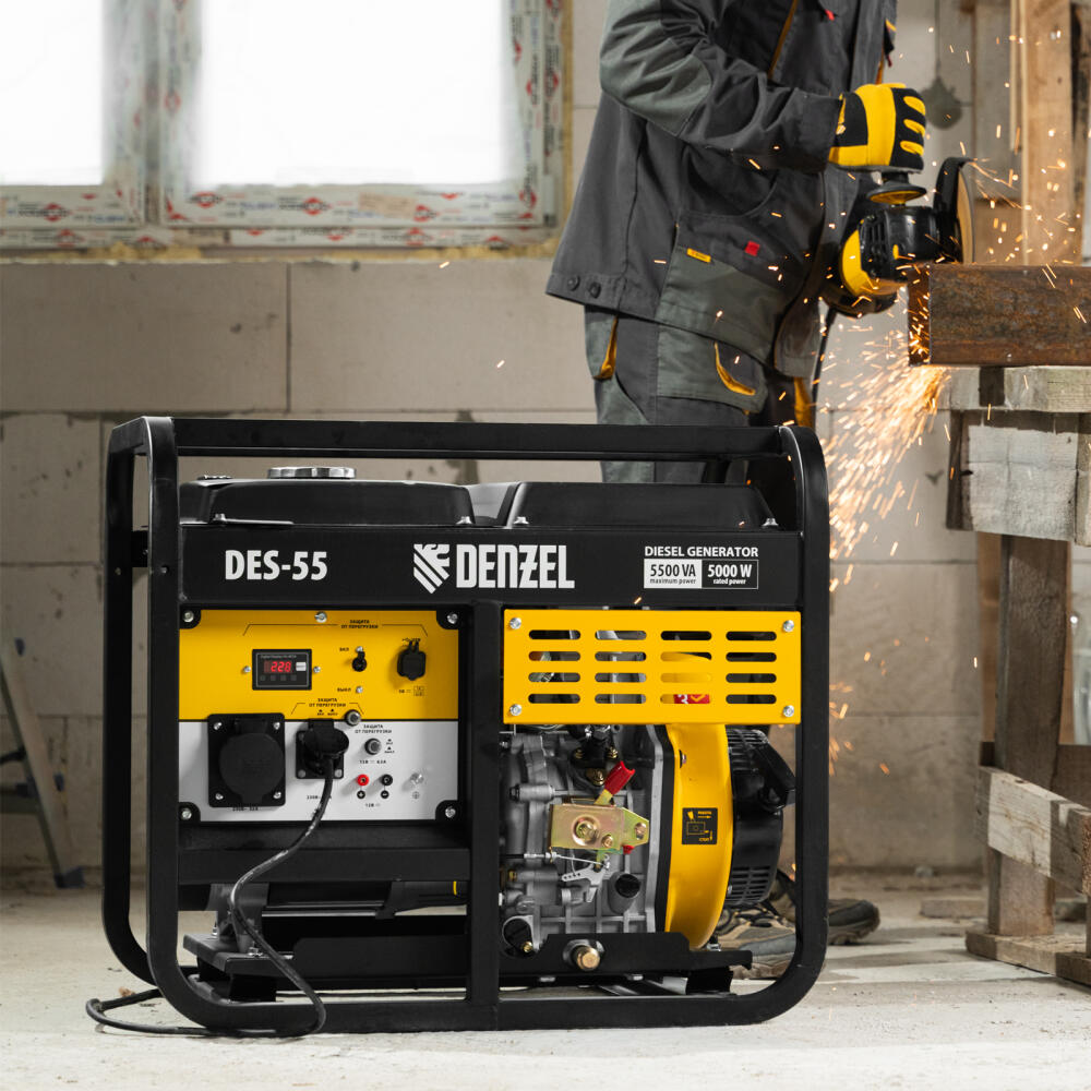 Генератор дизельный Denzel DES-55 94413 с объемом топливного бака 11 л, с ручным стартером, имеет максимальную выходную мощность 5,5 кВт и поддерживает напряжение в сети 230 В. Используется для снабжения энергией потребителей однофазного тока (осветительных приборов, бытовой техники, электроинструмента) при отсутствии доступа к стационарному источнику питания. Для подключения электроприборов служат 2 розетки: 230 В/16 А и 230 В/32 А. Клеммы постоянного тока 12 В позволяют заряжать автомобильные аккумуляторы, а двойной выход USB 5 В предназначен для подключения мобильных устройств (планшетов, смартфонов и т. д.). Генератор пригодится на строительной площадке и в загородном доме.