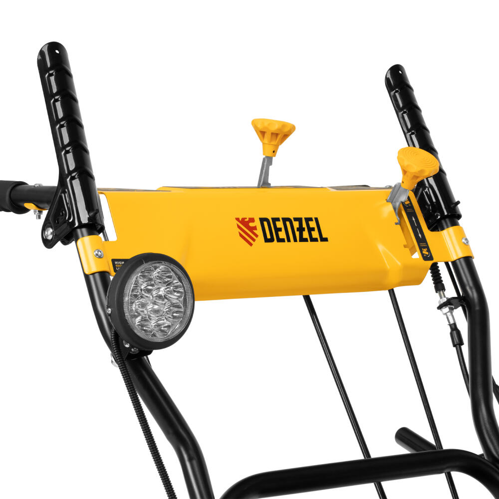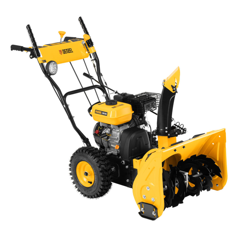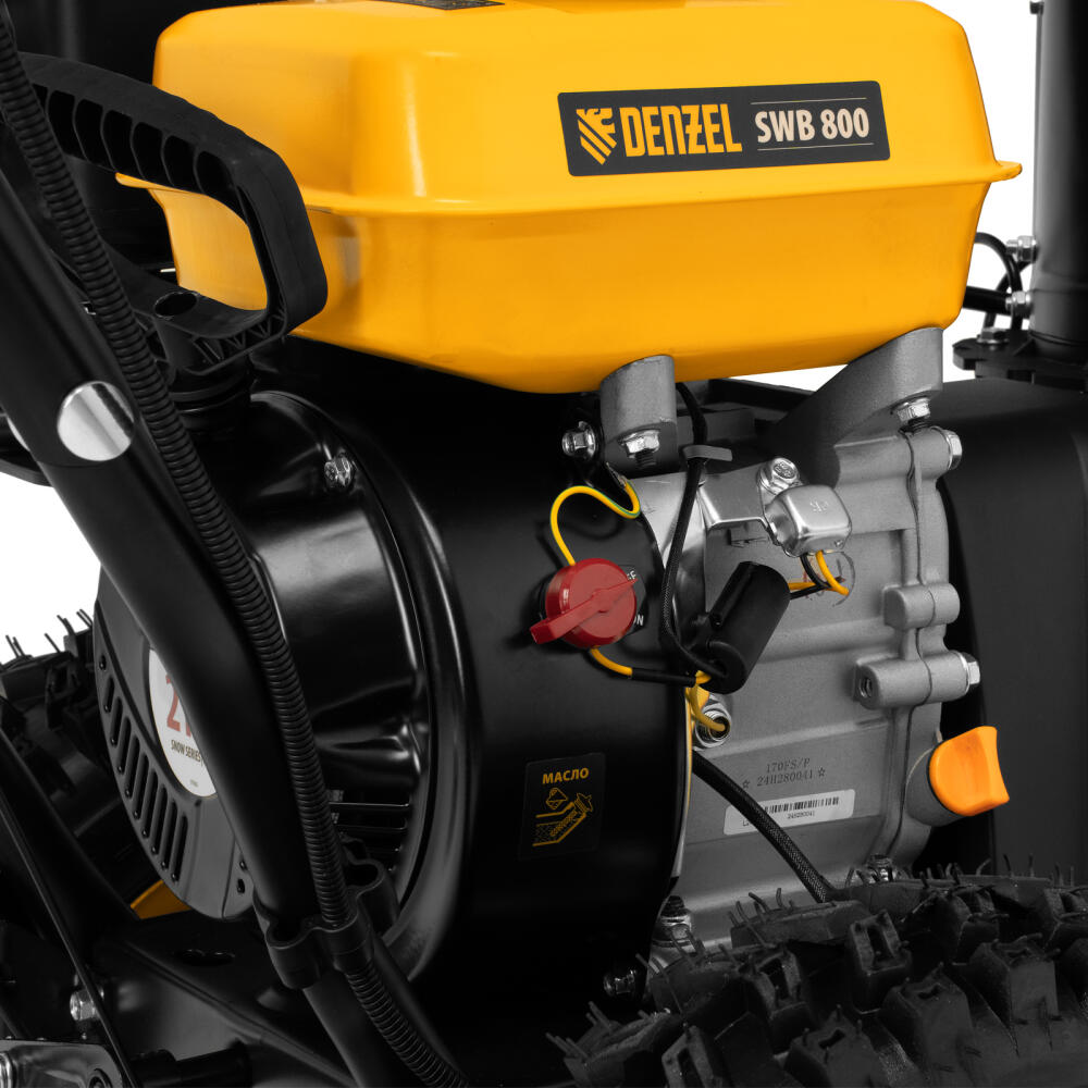 Гибридная снегоуборочная машина Denzel SWB-800 97662 с двигателем объемом 212 см3, ручным стартером и 2 насадками, предназначена для очистки территории от снега, а также может использоваться для уборки листвы, грязи, пыли и мусора. Благодаря приводу на колеса машину не нужно толкать. Ширина обработки щеткой составляет 800 мм, ширина снегоуборочной насадки — 560 мм при высоте захвата 430 мм. Машина позволяет быстро расчистить дорожки, тротуары, территорию парковки и т.д.