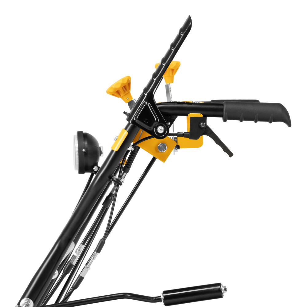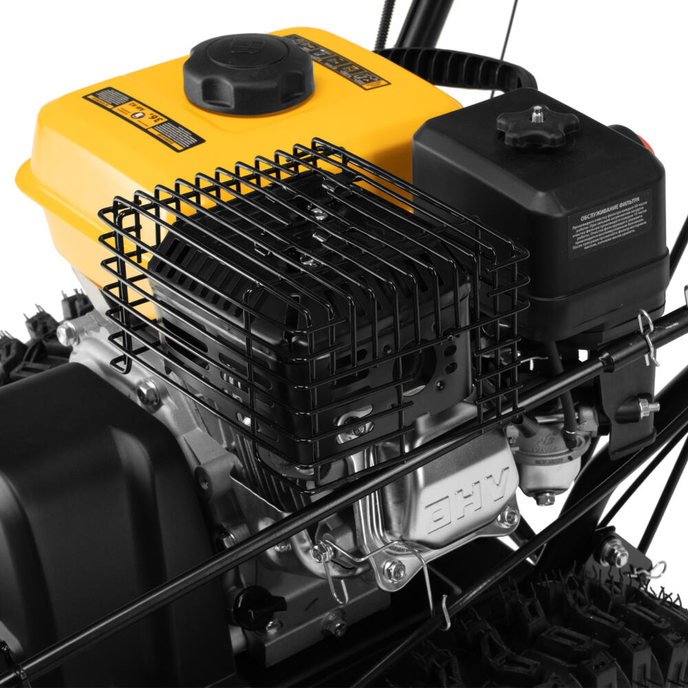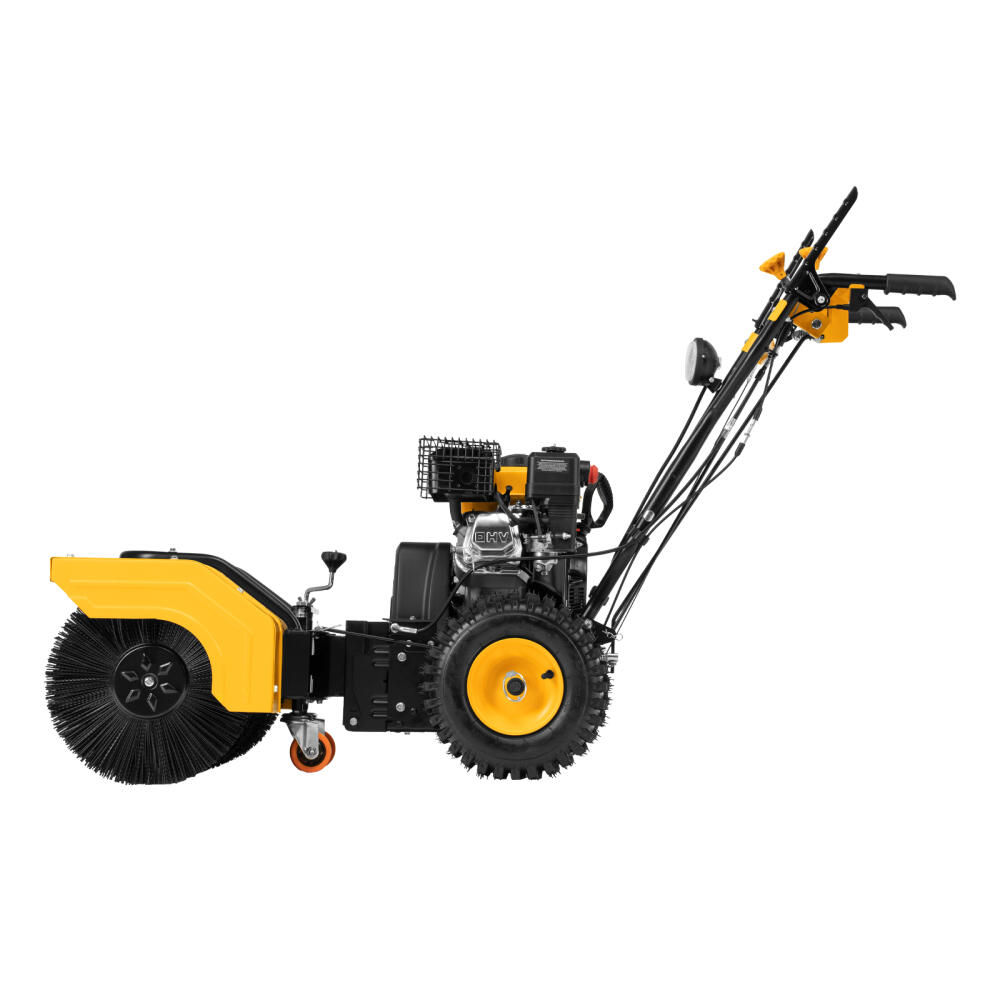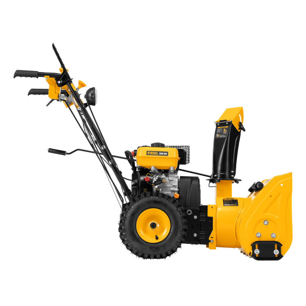 Гибридная снегоуборочная машина Denzel SWB-800 97662 с двигателем объемом 212 см3, ручным стартером и 2 насадками, предназначена для очистки территории от снега, а также может использоваться для уборки листвы, грязи, пыли и мусора. Благодаря приводу на колеса машину не нужно толкать. Ширина обработки щеткой составляет 800 мм, ширина снегоуборочной насадки — 560 мм при высоте захвата 430 мм. Машина позволяет быстро расчистить дорожки, тротуары, территорию парковки и т.д.