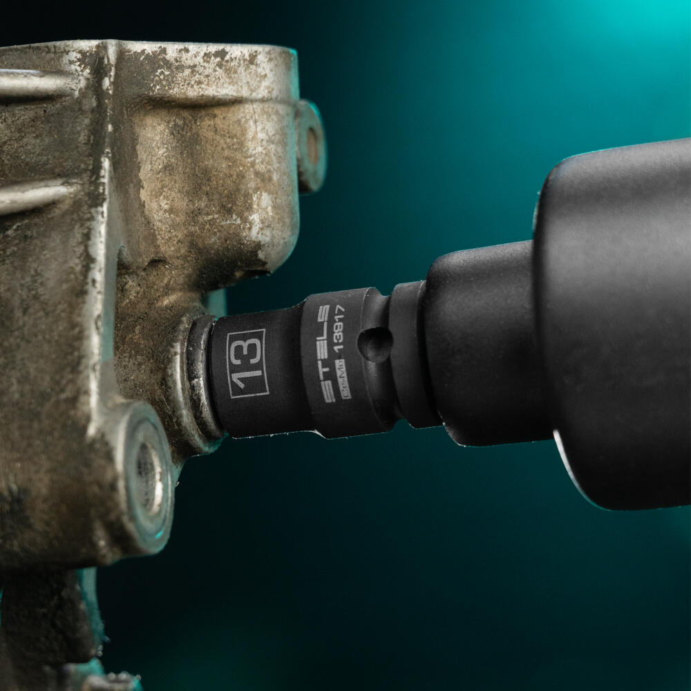 Ударная шестигранная головка Stels 13917 размером 13 мм, из стали CrMo, с присоединительным квадратом 1/2 дюйма, — сменная насадка для электрических и пневматических гайковертов. Она пригодится для монтажа и демонтажа крепежных элементов. Ударная головка выдерживает высокие динамические нагрузки, поэтому подходит для интенсивной эксплуатации на строительной площадке, в автомастерской и слесарном цеху.