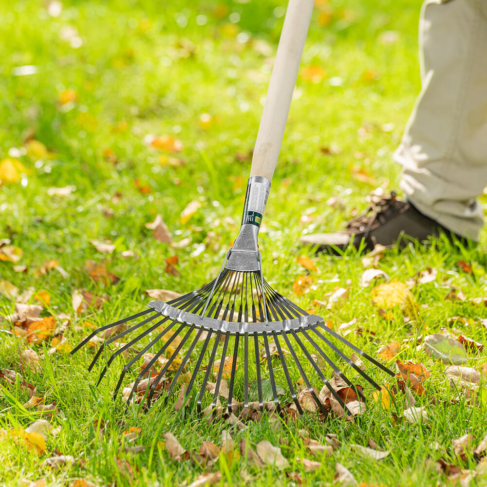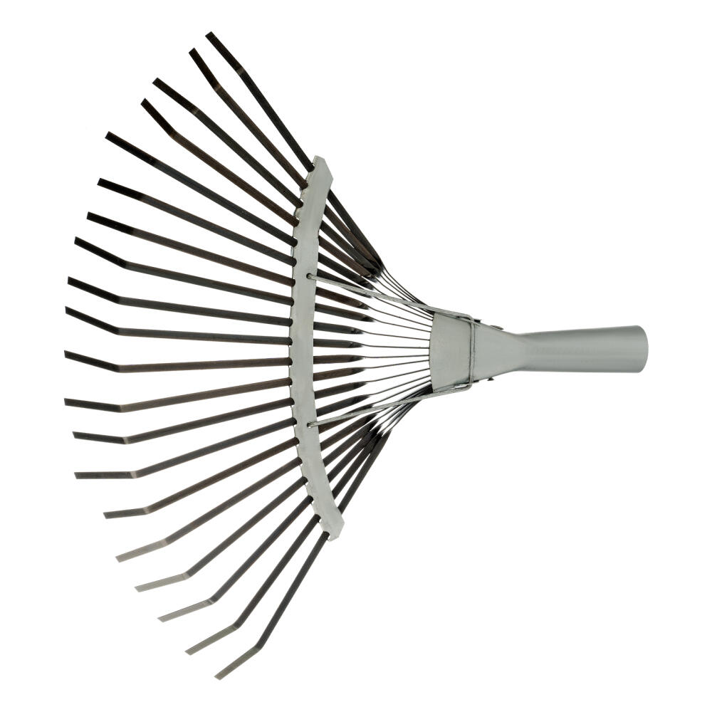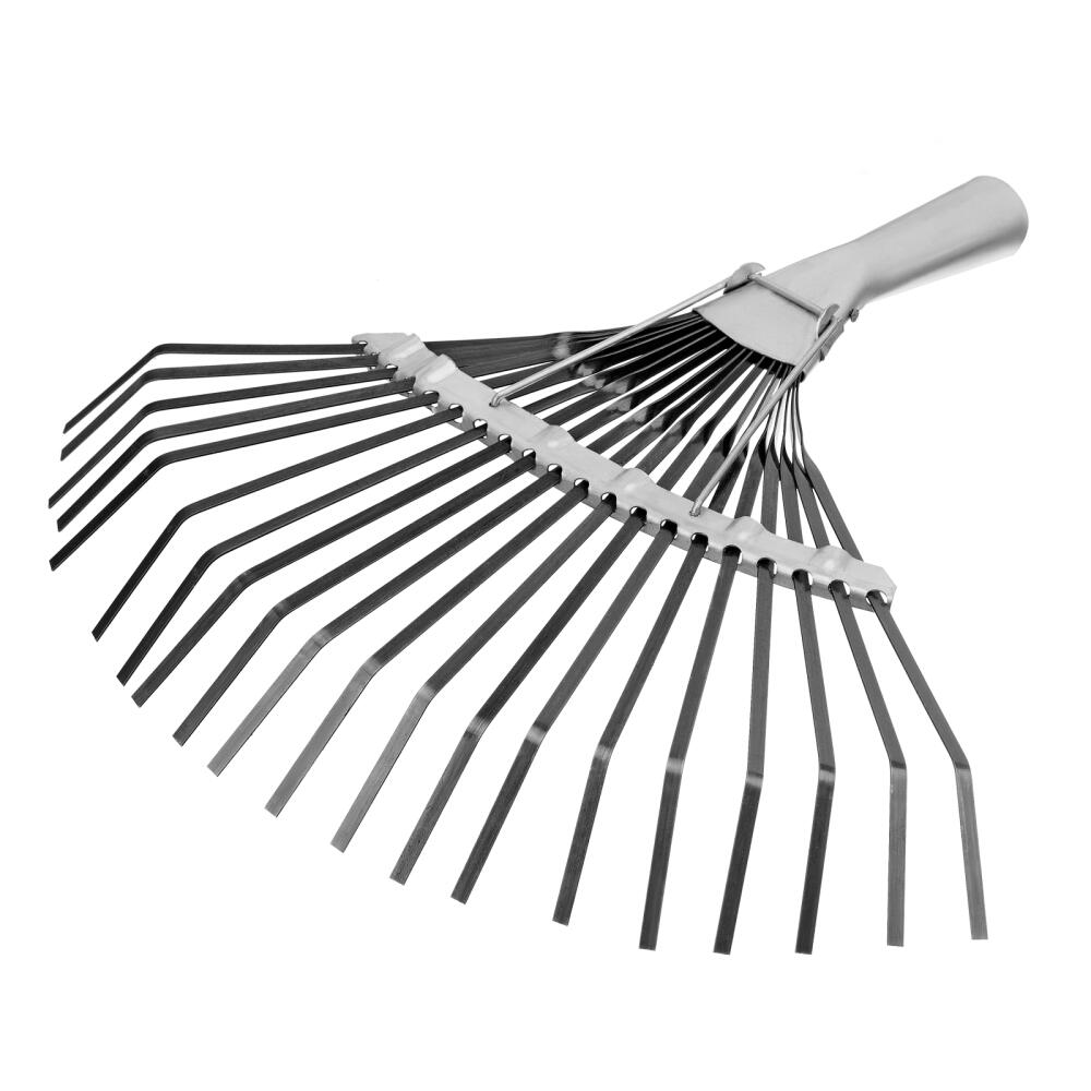 Веерные стальные грабли Сибртех 61778 с 20 плоскими зубьями, шириной 385 мм, оксидированные, без черенка, предназначены для работы на садовом участке. С их помощью удобно убирать мусор, листву и ветки с лужаек и грядок. Грабли можно установить на любой удобный черенок диаметром 25 мм.