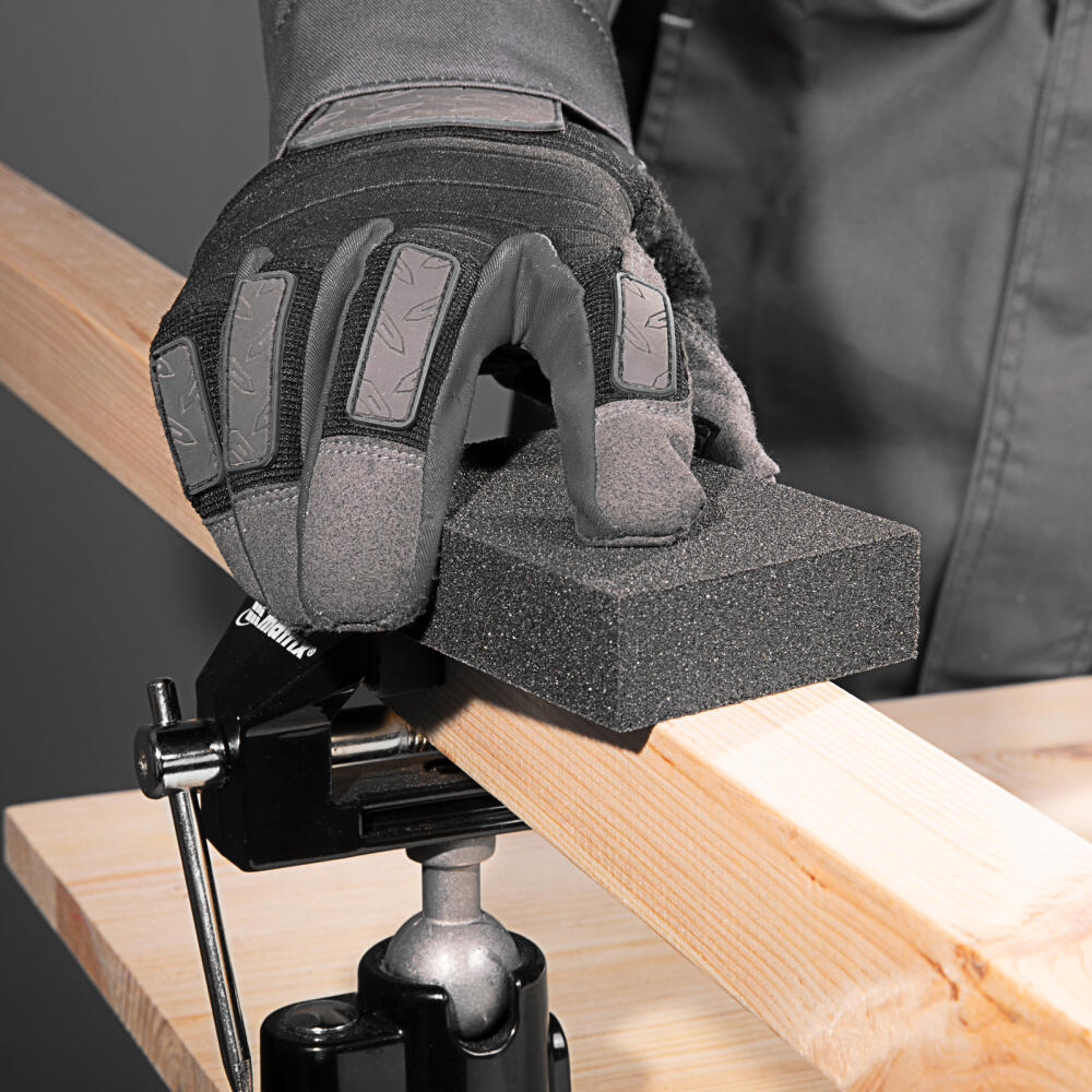 Губка для шлифования средней плотности Matrix 75711 размером 100 х 70 х 25 мм, с зернистостью P 40, используется для грубой (черновой) шлифовки деревянных, пластиковых, металлических, шпаклеванных поверхностей, удаления слоя краски и ржавчины. Абразивная губка пригодится для проведения строительных, ремонтных, кузовных работ, будет полезна в изготовлении мебели и в быту.