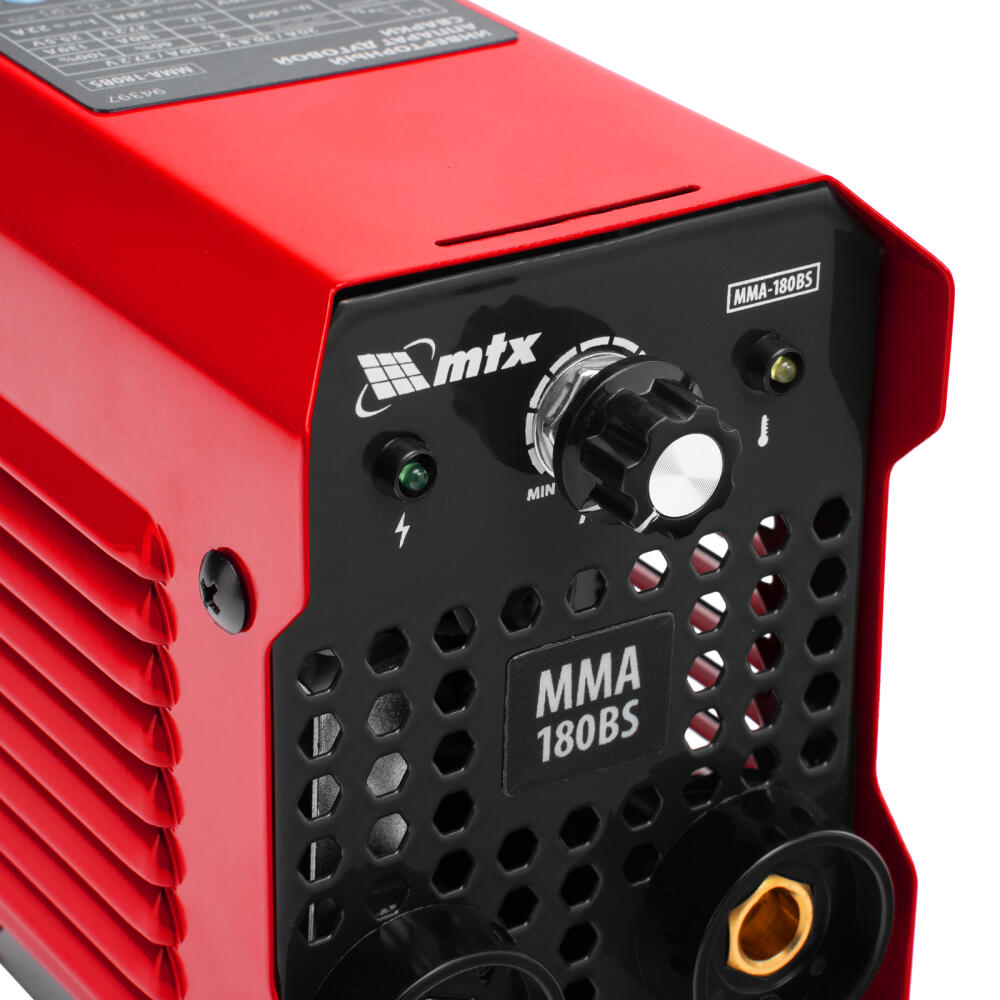 Сварочный аппарат MTX MMA-180BS 94397 предназначен для ручной дуговой сварки и наплавки покрытым электродом заготовок из низкоуглеродистой стали при постоянном токе до 180 A. Работает с электродами диаметром 1,6-4 мм. Продолжительность включения при максимальном токе составляет 60%. Аппарат изготовлен с использованием современных электронных компонентов и стабильно работает даже при пониженном напряжении величиной от 150 В. Пригодится сотрудникам коммунальных служб, также будет полезен в быту.