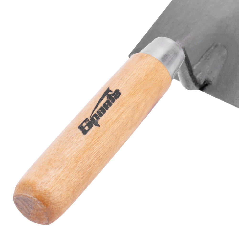 Стальная кельма бетонщика Sparta 862705 с полотном длиной 160 мм и деревянной ручкой применяется в ходе строительных и отделочных работ. Полотно треугольной формы с закругленными краями оптимально для перемешивания, накидывания и равномерного распределения растворов различной плотности, заполнения вертикальных швов и удаления излишков состава. Кельма удобна для работы в труднодоступных местах.