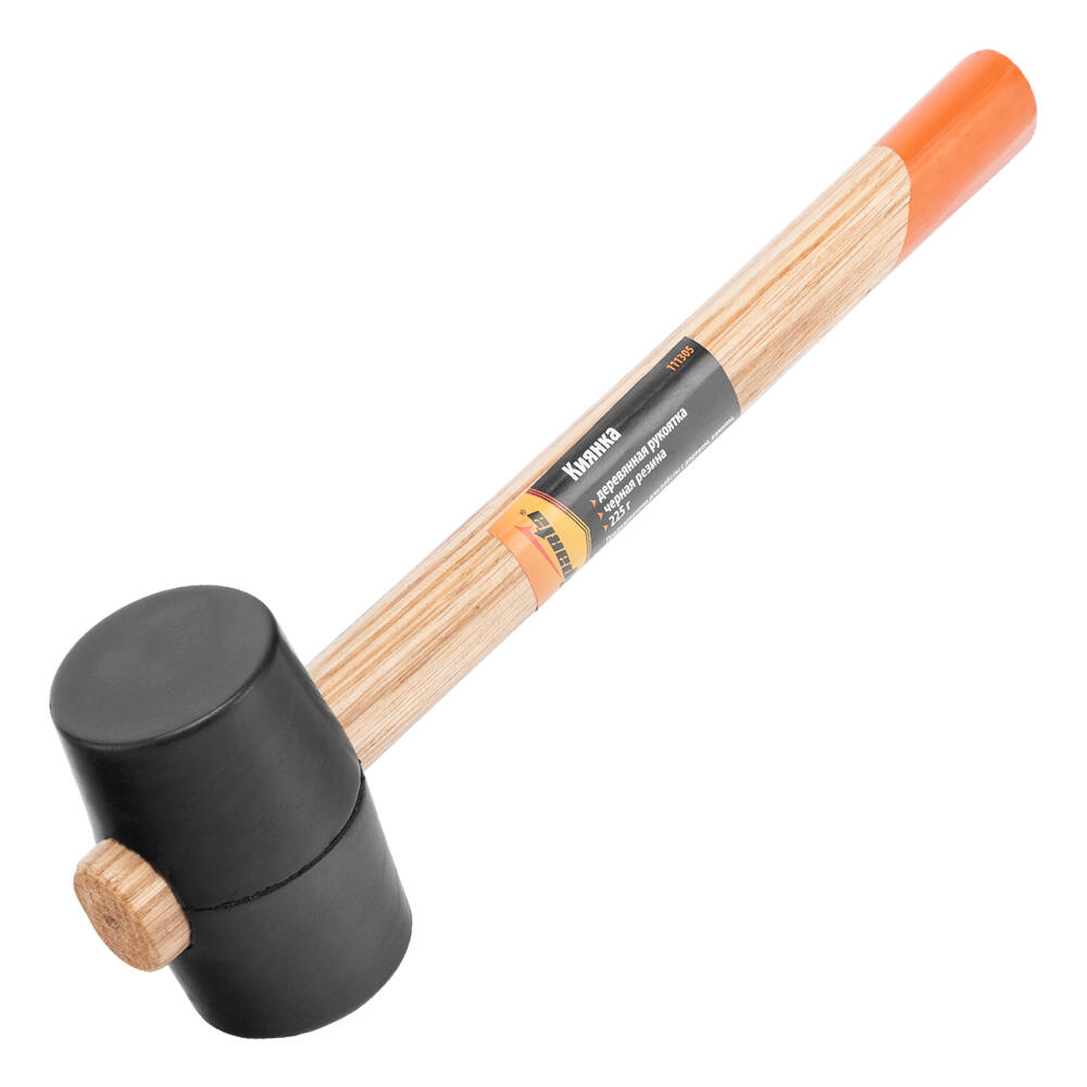 Резиновая киянка Sparta 111305 из черной резины, с деревянной рукояткой и бойком весом 225 г, используется при укладке плитки и ламината, рихтовке металла, сборке мебели. Профессиональный инструмент хорошо амортизирует удар, что позволяет эффективно решать поставленные задачи.