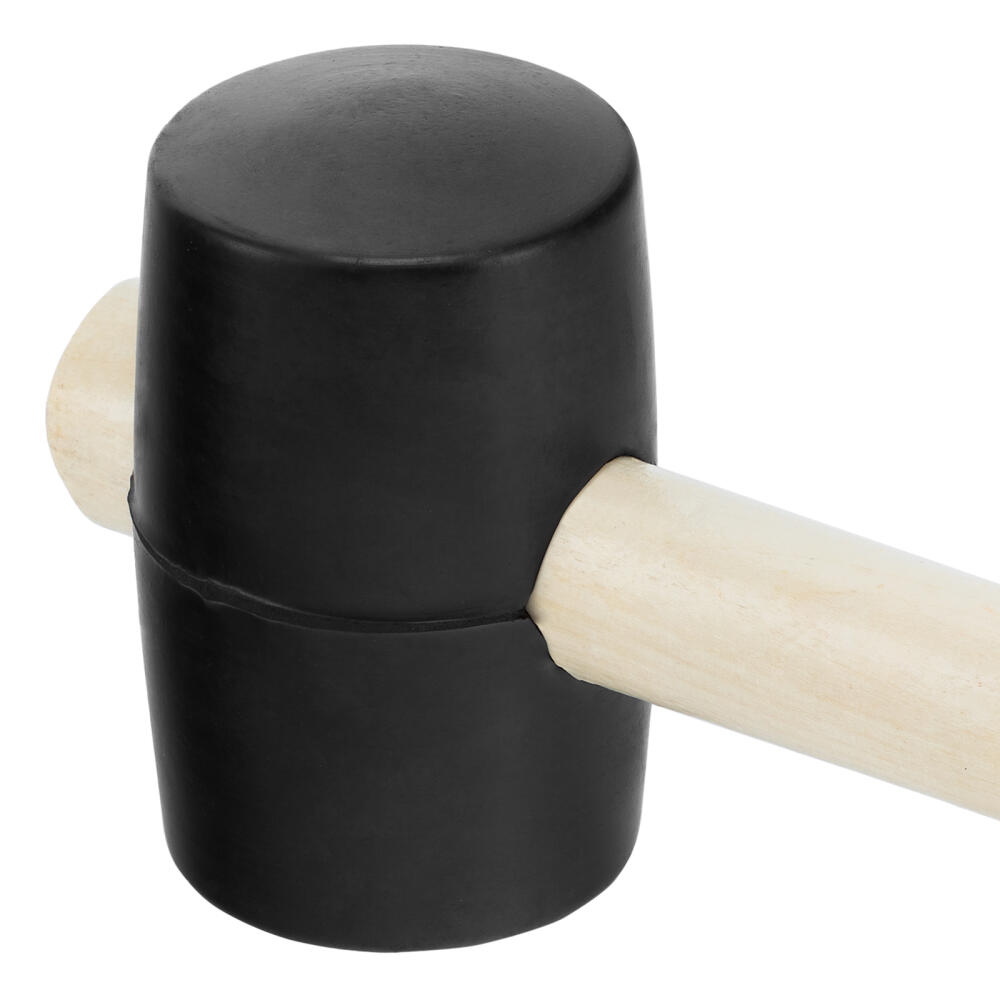 Резиновая киянка Sparta 111405 из черной резины, с деревянной рукояткой и бойком весом 340 г, используется при укладке плитки и ламината, рихтовке металла, сборке мебели. Профессиональный инструмент хорошо амортизирует удар, что позволяет эффективно решать поставленные задачи.