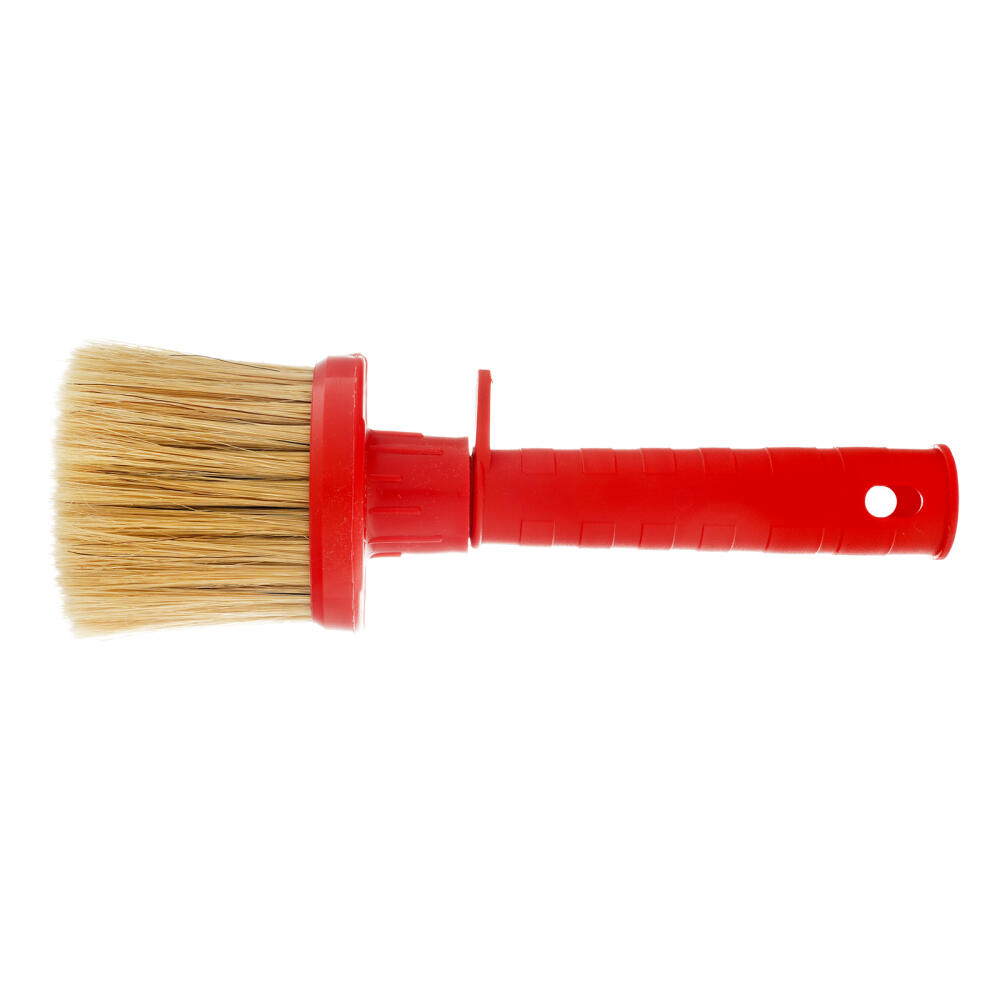 Маховая кисть Matrix KM 65 84006 с натуральной щетиной, пластиковыми корпусом и ручкой, используется для нанесения краски, побелки или грунтовки на поверхности большой площади. Круглый пучок кустовой набивки позволяет наносить лакокрасочный материал плотным слоем. В составе пучка преимущественно натуральная щетина, поэтому кисть устойчива к износу и не теряет упругости при длительном использовании.