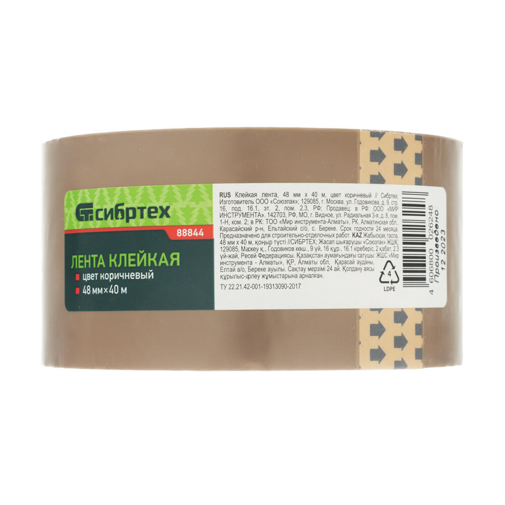 Клейкая лента Сибртех 88844 размером 48 мм х 40 м, коричневого цвета, обеспечивает надежное сцепление с поверхностями, поэтому пригодится при упаковке коробок для последующей транспортировки и хранения. Удобна для склеивания широких поверхностей. Не теряет своих свойств на открытом воздухе и при низкой температуре.