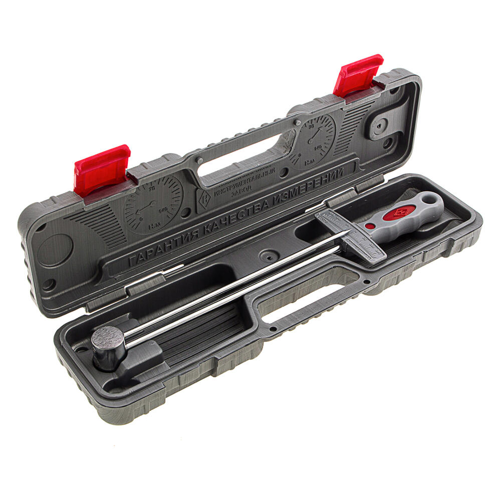 Ключ динамометрический НИЗ 14150 с присоединительным квадратом 1/2" (12,5 мм) предназначен для затягивания крепежей с точно определенным усилием. Оснащен шкалой, позволяющей контролировать момент силы в диапазоне 32-120 Нм. Инструмент используется при сборке и обслуживании оборудования, а также применяется для ремонта автомобилей.