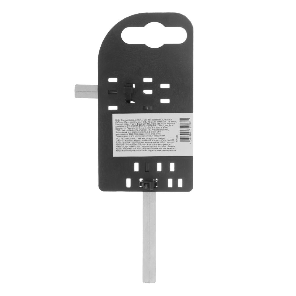 Ключ имбусовый никелированный Сибртех 12334 размером 7 мм, из закаленной стали 45Х, используется для монтажа и демонтажа резьбового крепежа с шестигранным шлицем HEX. Пригодится для сборки мебели, ремонта велосипедов, регулировки пластиковых окон и балконных дверей.
