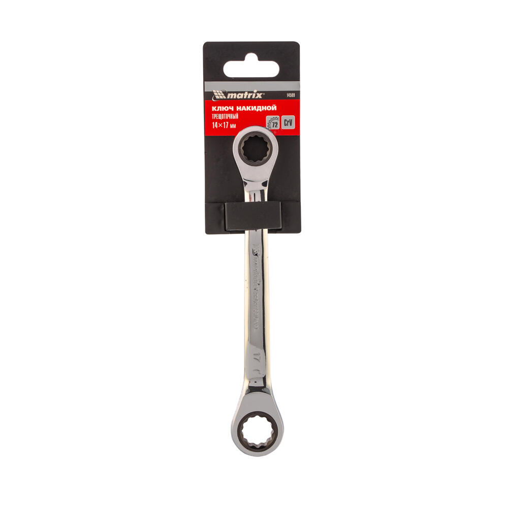 Накидной трещоточный ключ Matrix 14509 из стали CrV, с покрытием из зеркального хрома, пригодится частным мастерам и профессионалам для монтажа и демонтажа резьбовых соединений размером 14 и 17 мм. Ключ будет полезен в гараже, на производстве, строительной площадке, в быту. Трещоточный механизм с 72 зубьями повышает эффективность и скорость закручивания/откручивания болтов, гаек и других крепежей.