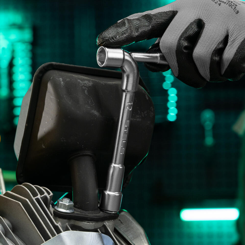 Угловой проходной ключ Stels 14233 размером 12 мм используется для работы в труднодоступных местах, когда обычный рожковый или накидной ключ не достает до крепежа. Будет полезен частным и профессиональным мастерам.