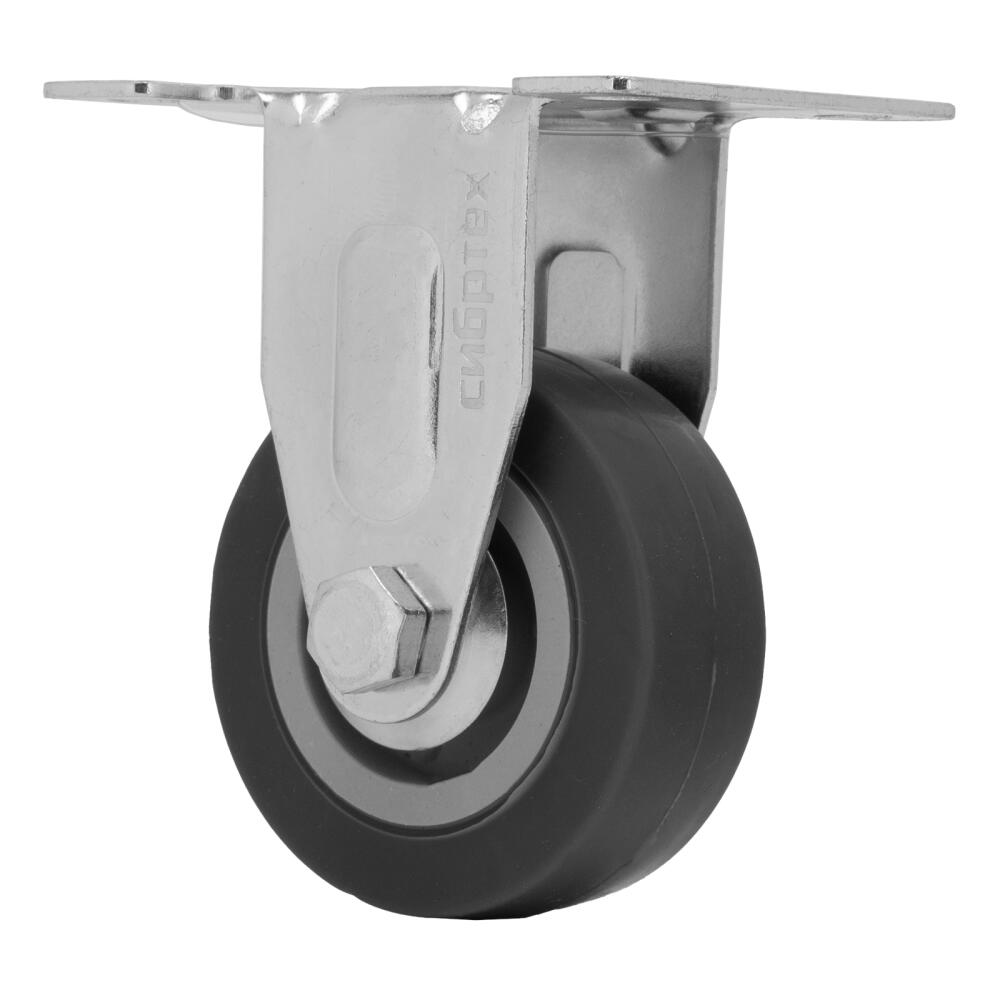 Колесо неповоротное Сибртех 68707 диаметром 50 мм, с платформенным креплением, обладает грузоподъемностью 35 кг и устанавливается на ручные тележки. Благодаря шине из прочной резины не повреждает поверхность и не издает шума при движении. Колесо служит для перемещения грузов по прямолинейной траектории в производственных и складских помещениях, а также под открытым небом.