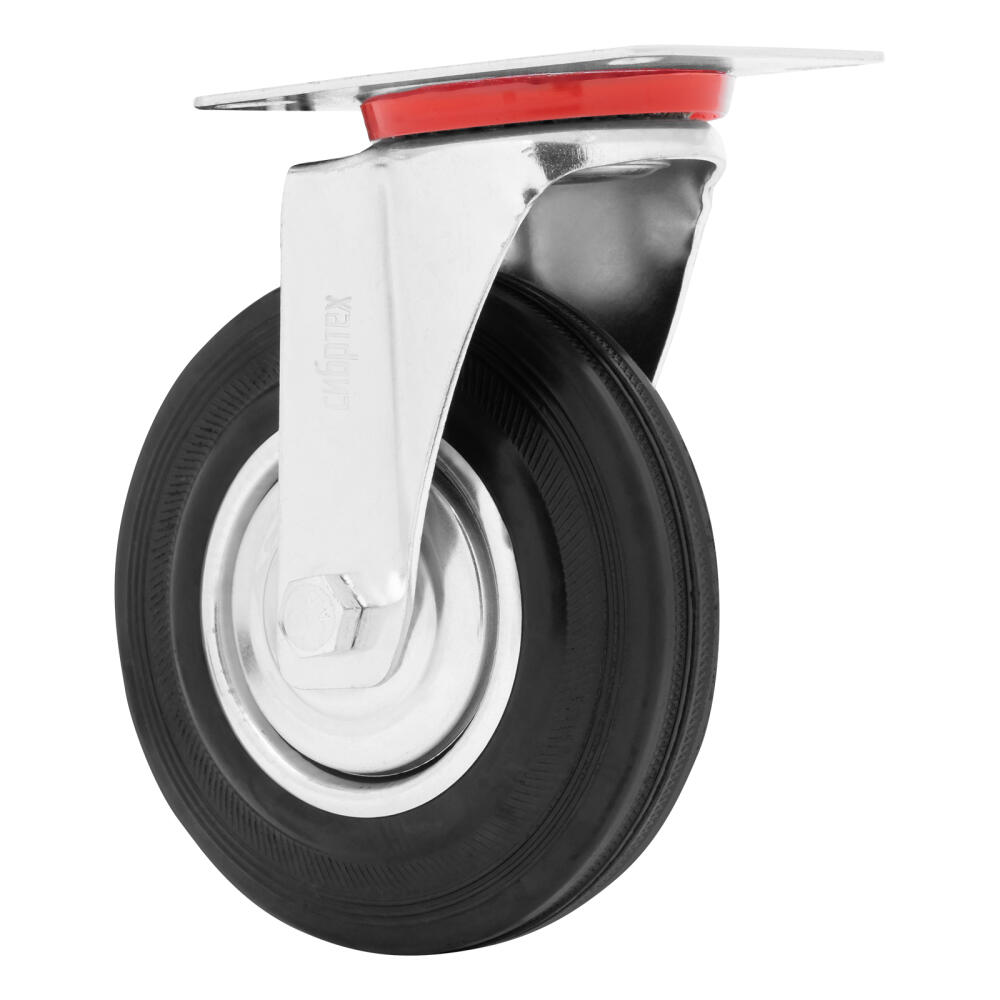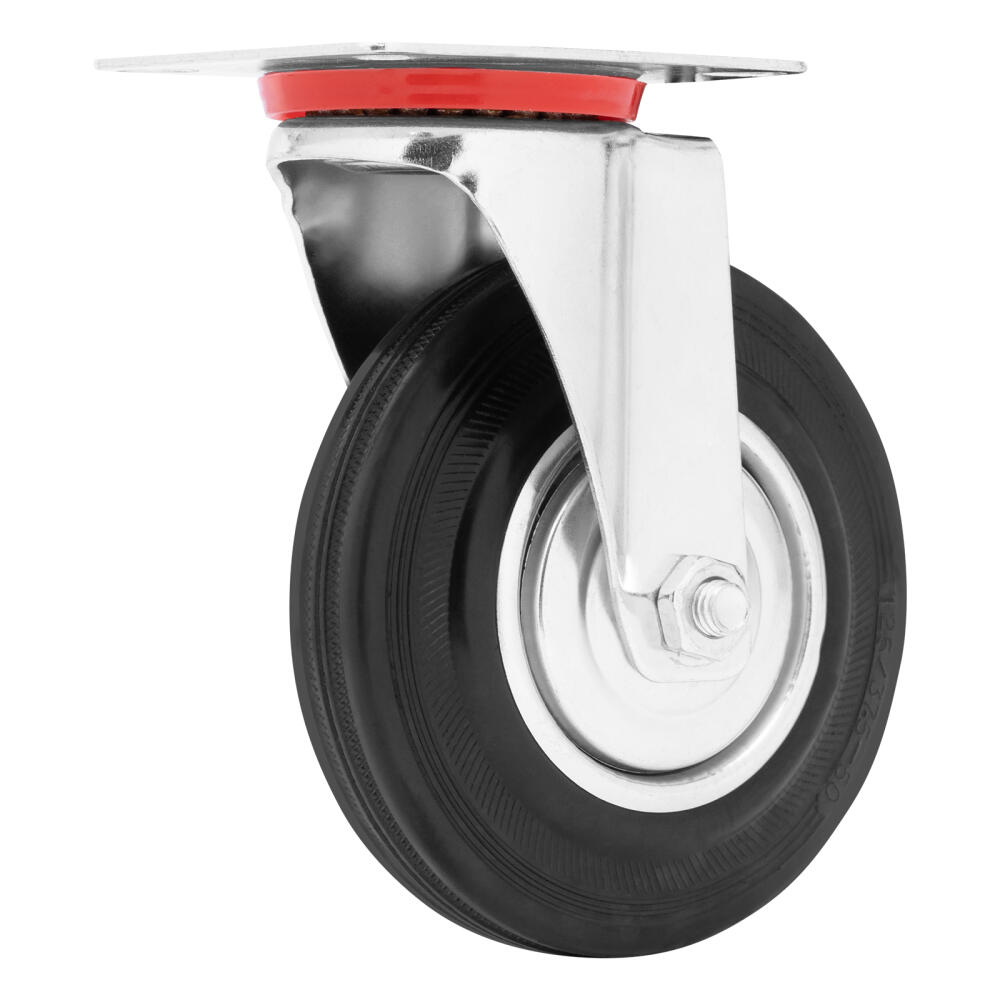 Колесо поворотное Сибртех 68716 диаметром 125 мм, с платформенным креплением, имеет грузоподъемность 100 кг и устанавливается на ручные промышленные тележки. Выдерживает температуру от -25 до +50 °C, устойчиво к воздействию ультрафиолета и влаги, поэтому подходит для эксплуатации как внутри помещения, так и снаружи. Поворотный механизм облегчает маневрирование. Колесо используется для перемещения грузов на производстве или на складах.
