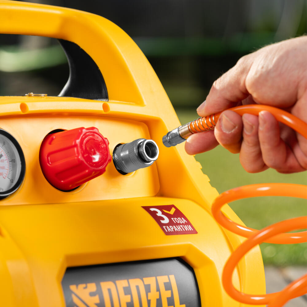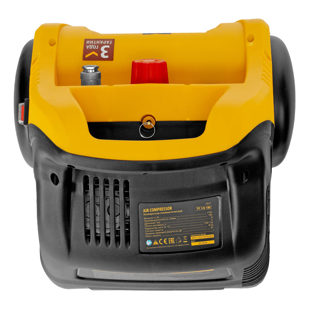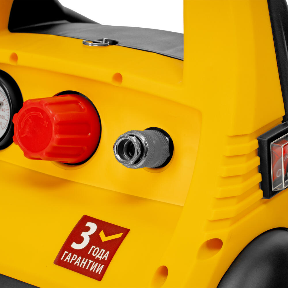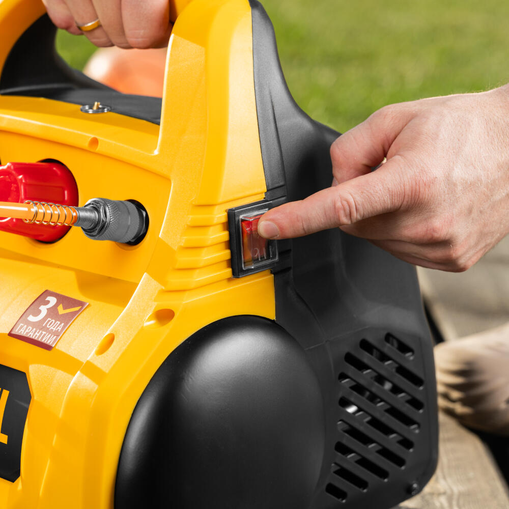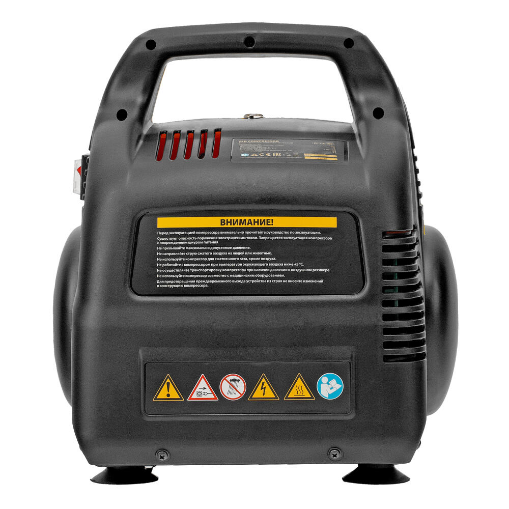 Безмасляный компрессор подходит для работ, не допускающих попадания масла в воздух: покраски, накачки шин, продувки компьютерной техники, чистки строительных инструментов. Допускается подключение пневмонейлера и пневмогравера. Безмасляная технология RTFE значительно упрощает работу с устройством: не нужно использовать маслоуловители или маслоотделители, искать масло и следить за его уровнем.,Генератор энергии сжатого воздуха вырабатывает 180 л в минуту с мощностью 1.1 кВт, что является пиковым значением для безмасляных моделей такого класса. ,Компактные размеры и продуманный дизайн позволяют легко переносить компрессор за удобную транспортировочную ручку. Вес 11.15 кг и габариты 30 х 33 х 36 см упрощают размещение устройства на рабочей площадке и хранение.