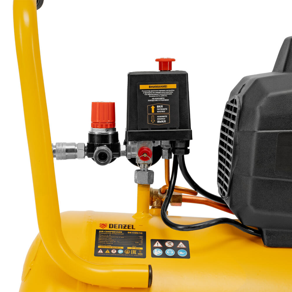 Воздушный компрессор Denzel Х-PRO DK1500/50 58064 мощностью 1,5 кВт, производительностью 230 л/мин, имеет ресивер объемом 50 л и подходит для бытового использования. Обеспечивает подачу воздуха к различным пневматическим инструментам: шуруповерту, краскопульту и др. Будет незаменим в гараже, когда надо подкачать колеса автомобиля или подкрасить его отдельные детали, а также на даче или в частной мастерской. Несмотря на простоту конструкции, компрессор имеет хорошую производительность и возможность подключения сразу нескольких инструментов.