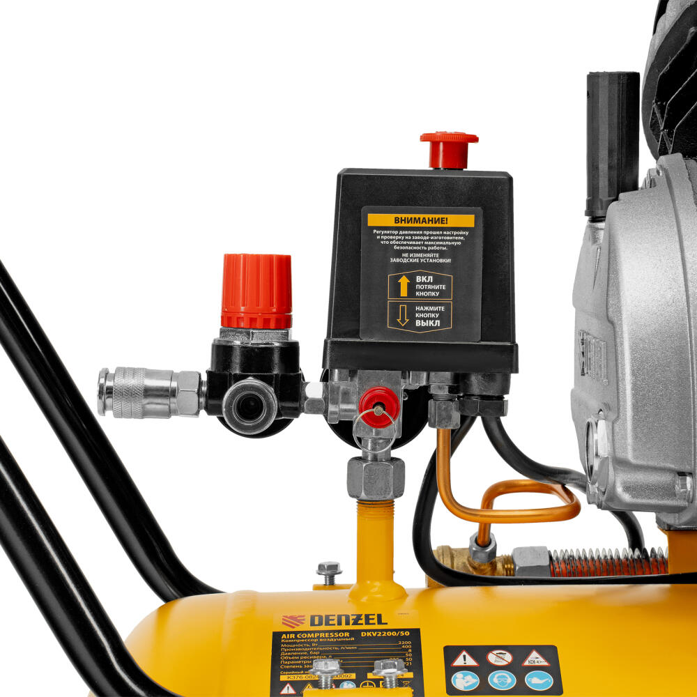 Воздушный компрессор Denzel DKV2200/50 Х-PRO 58083 мощностью 2,2 кВт, с объемом ресивера 50 л сжимает за минуту до 400 л воздуха и предназначен для применения в быту, на станции СТО и строительной площадке. Используется для обеспечения сжатым воздухом пневмоинструмента, например, пневмозубила, пневмогайковерта, пневмомолотка, пневмодрели. 2 евроконнектора позволяют подключить одновременно несколько инструментов для повышения эффективности работы.