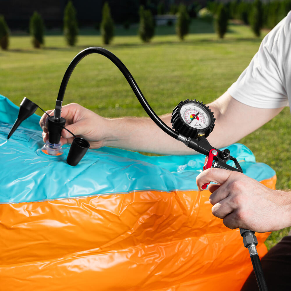 Безмасляный компрессор предназначен для пневмопистолетов, продувочного инструмента и другого оборудования, исключающего контакт с маслом. Высокой производительности в 180 л/мин вполне хватит, чтобы подкачать шины, продуть технику, провести частичную подкраску и обеспечить выполнение других технических работ. Компрессор выполнен в виде моноблока, что очень удобно для его хранения, переноски и размещения на рабочей площадке. Отсутствие ресивера и безмасляная технология позволяют получать чистый воздух без примесей влаги и масляных паров. Также отпадает необходимость проверять давление в ресивере и удалять конденсат после рабочего цикла. К компрессору прилагается большой набор переходников и насадок, универсальный пневмопистолет, быстросъемное соединение со сменными соплами для накачивания шин и продувки воздухом. Поэтому пользователю не придется тратить время на поиски комплектующих.